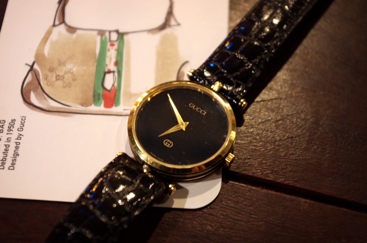 GUCCIのフェイスのサイド部分にシェリーラインが入った腕時計をご紹介致します。