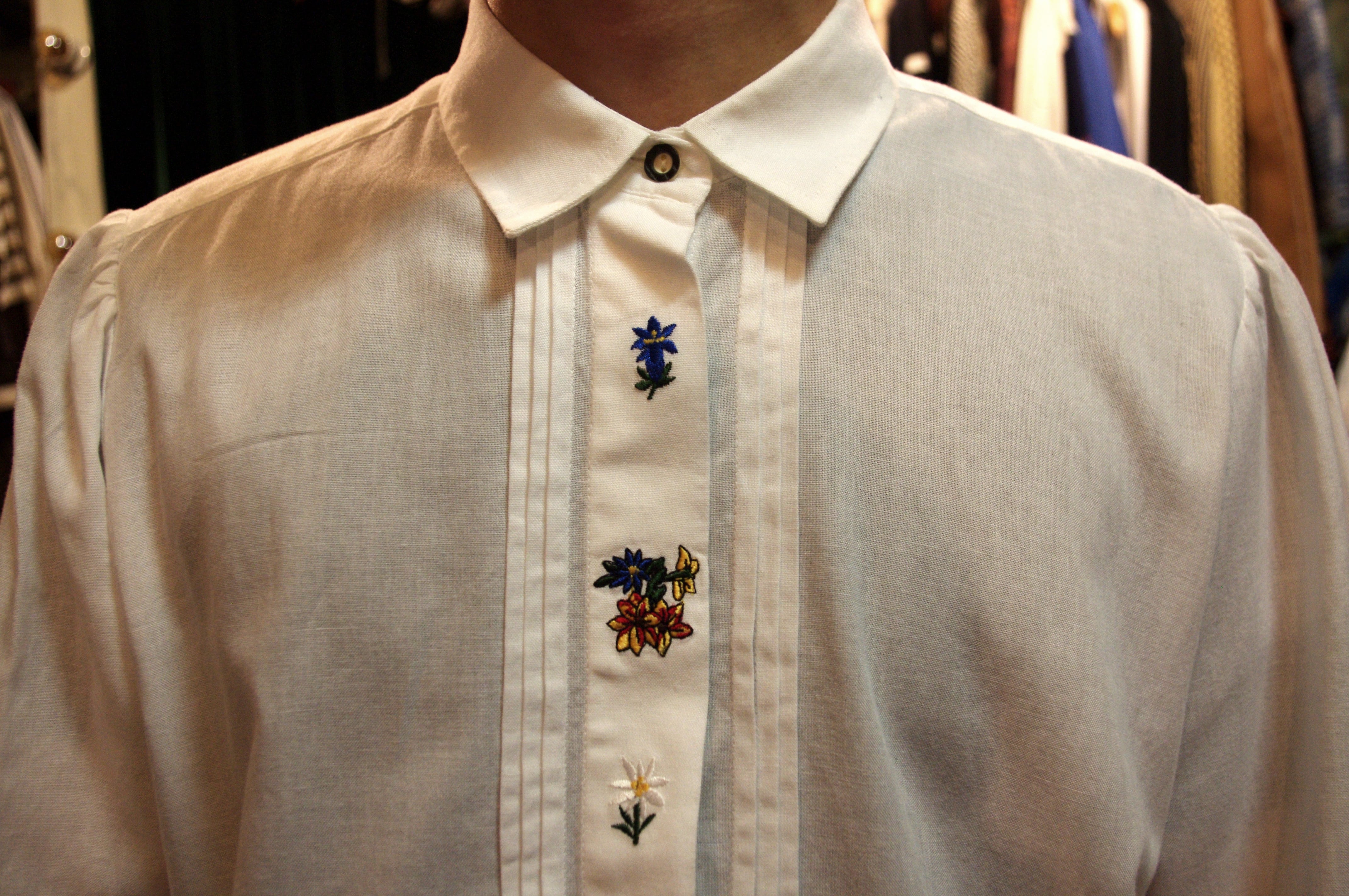 クリーンな真っ白のコットン地にオーストリアの国花であるエーデルワイスの刺繍が映えるAUSTRIA vintageのシャツをご紹介致します。