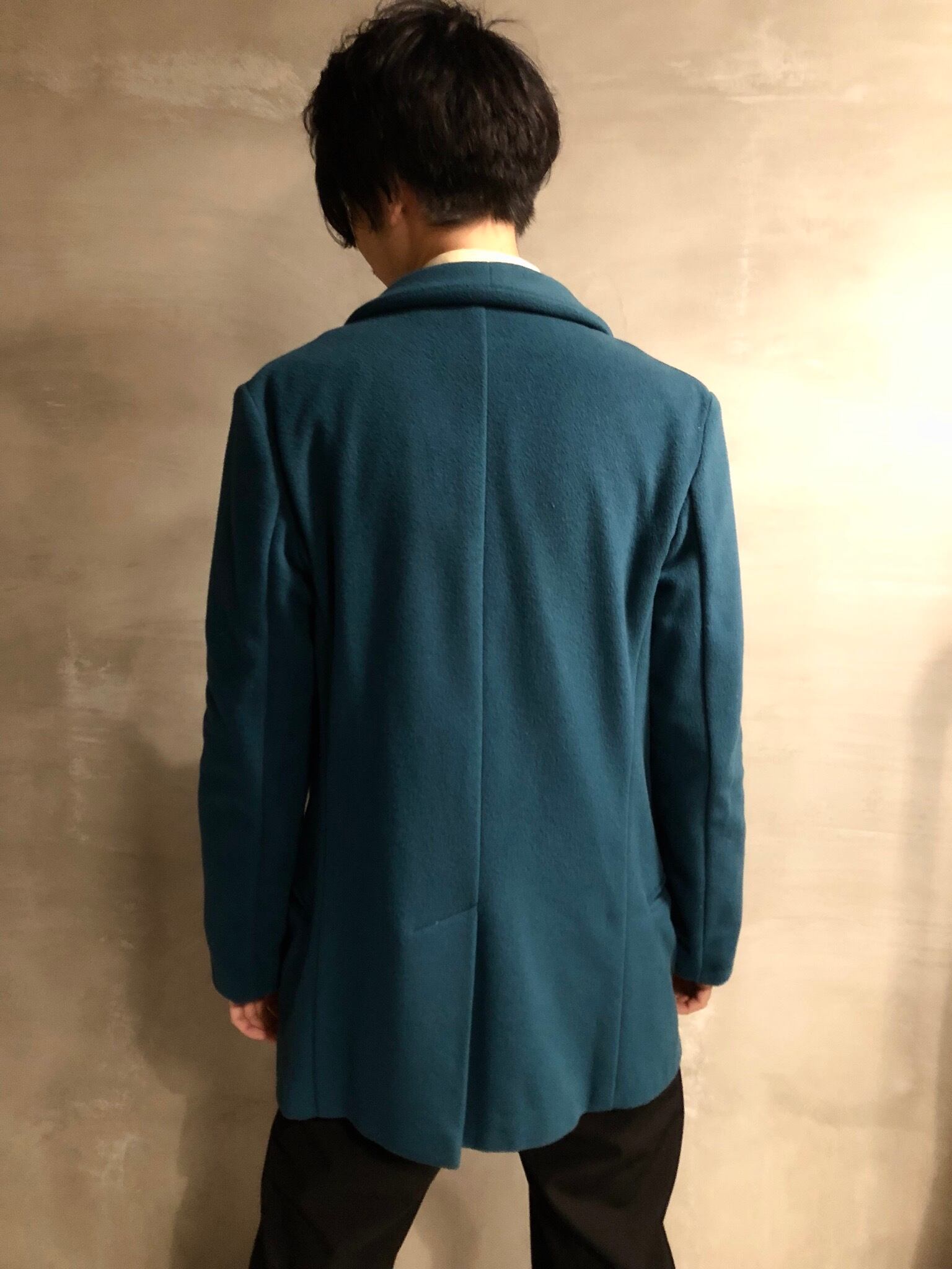 ショールカラーでタイト。少し高いウエストを取り、クラシックな中に、メルトンウールで暖かみのあるカジュアルテイストもMIX。