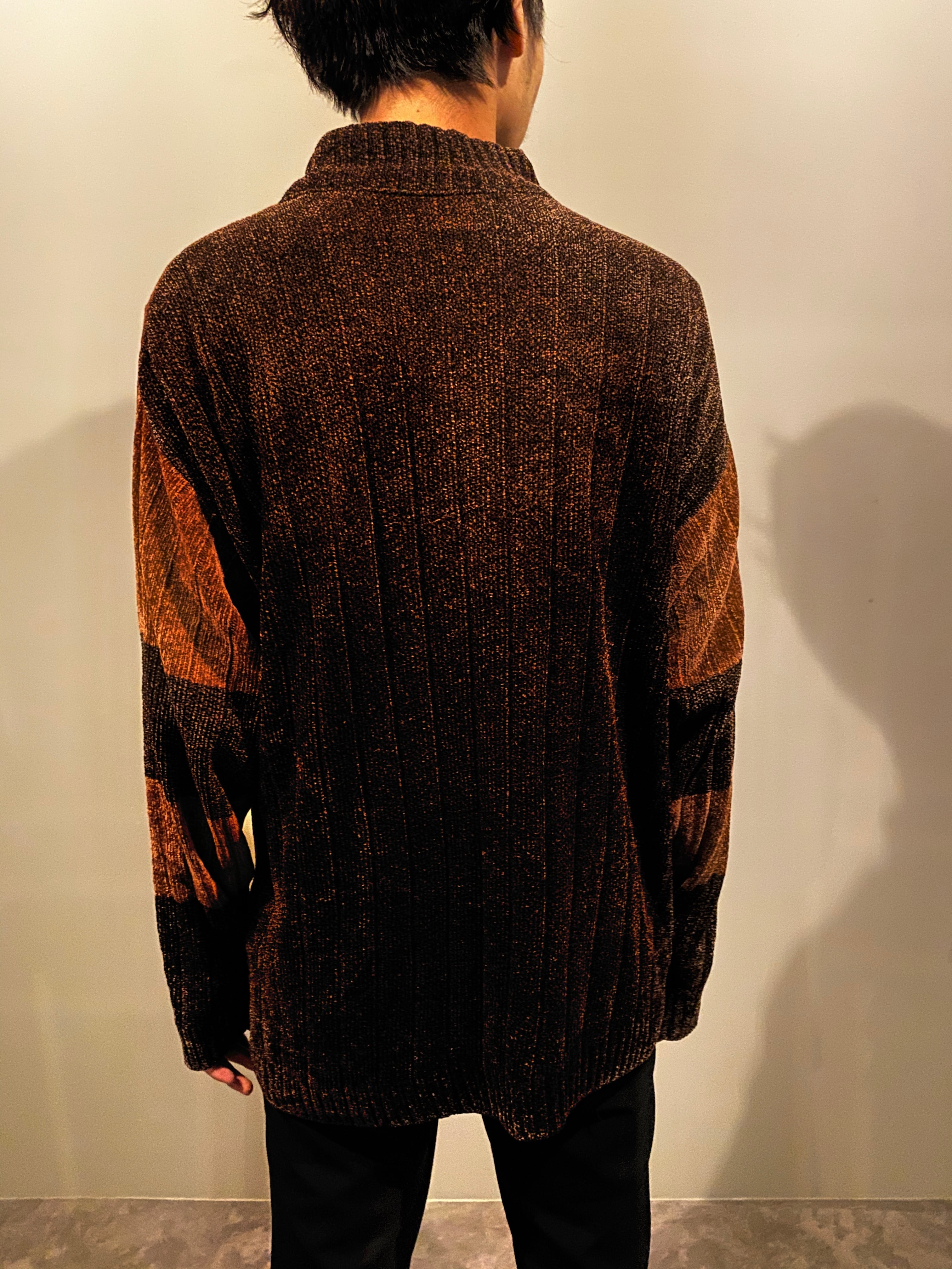 ダークブラウン×ブラウンの秋冬らしいカラーミックスで、柔らかい質感が男性的ながらもどこかセクシーな一着です。
