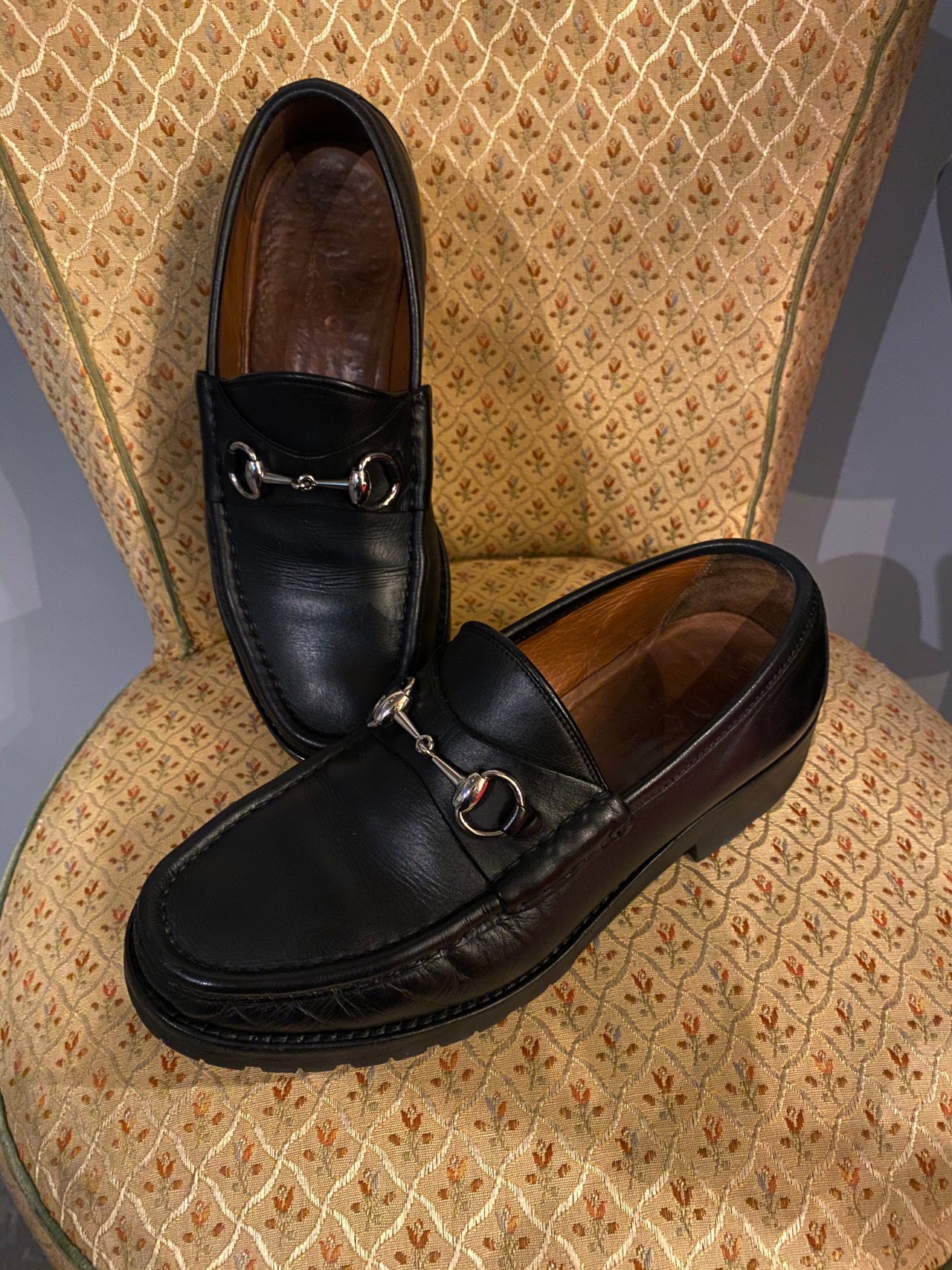 このシリーズは1950年代から約60年 展開されており、現在もGUCCIのアイコンシューズとして今のデザイナー アレッサンドロミケーレ氏によってデザインされ世界中に展開されています。ただ、現行の木型は幅が細くなっていますので、典型的に幅広甲高の日本人にはvintage のGUCCIの方が足に馴染みがよくおススメ。