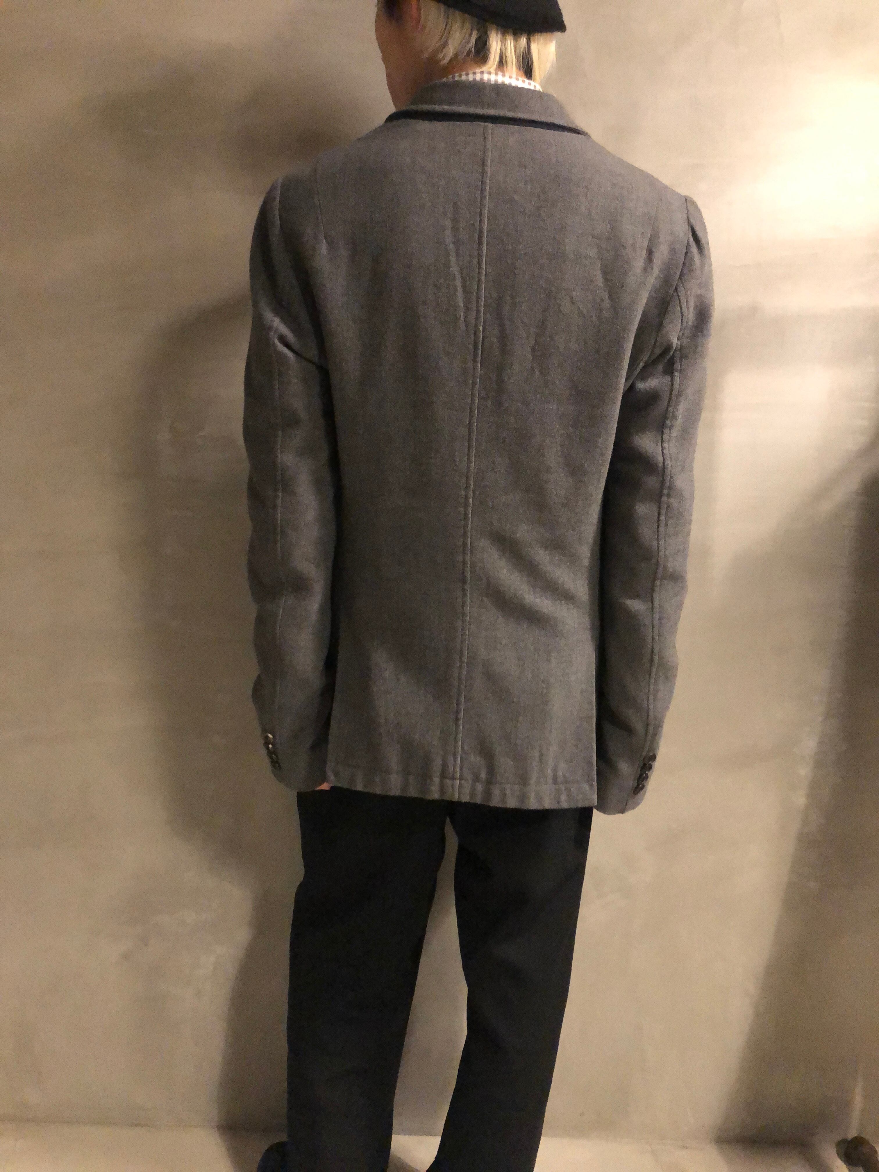 ヴィンテージの風合いのウールに、コットンのポケットチーフが効いた、クラシカルかつカジュアルスタイルでも合わせていただく事ができるジャケットです。