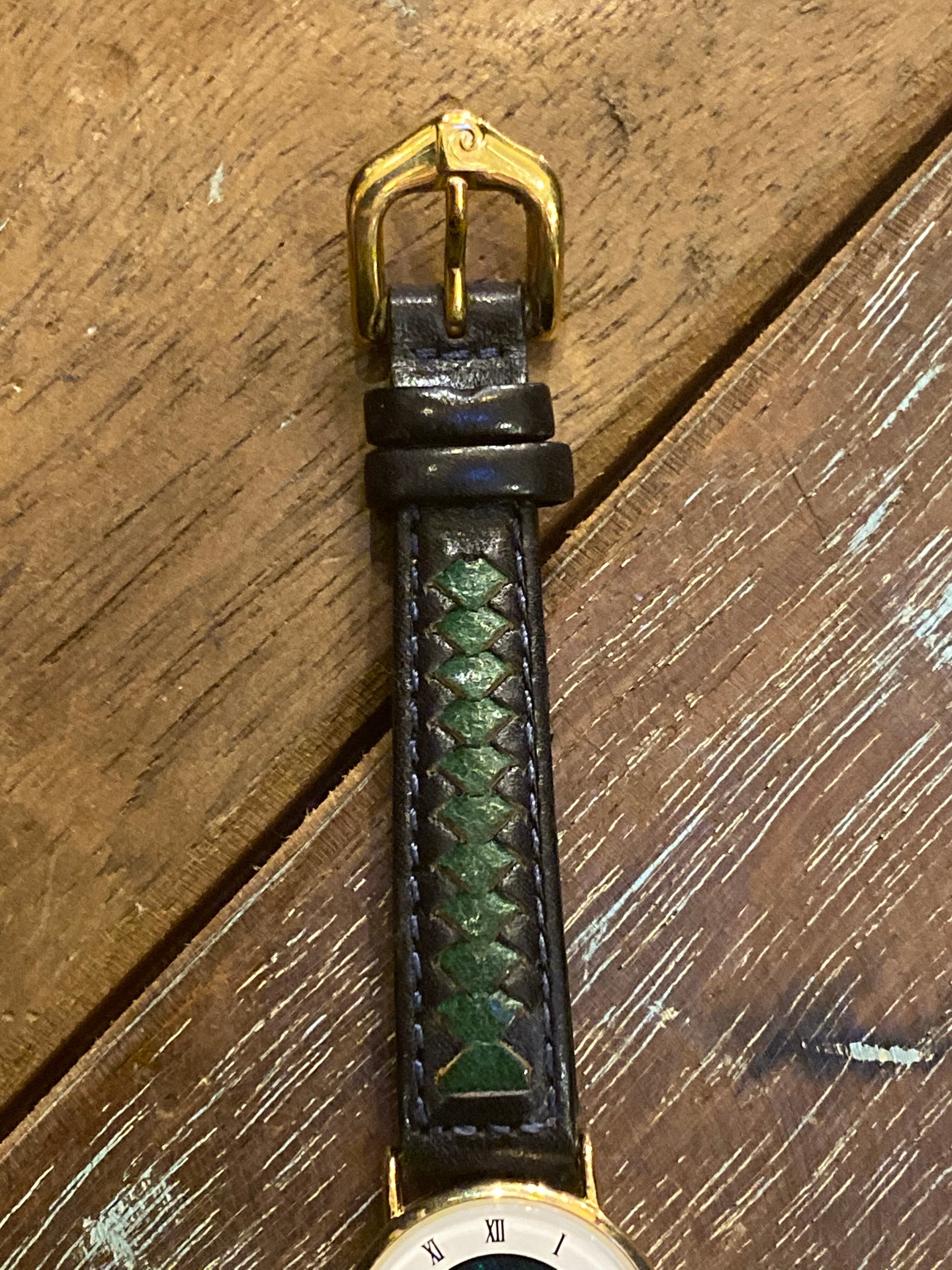 鉱石であるオパールが細かく砕かれレンズ内に贅沢に敷き詰められたPierre Cardinのヴィンテージウォッチ。