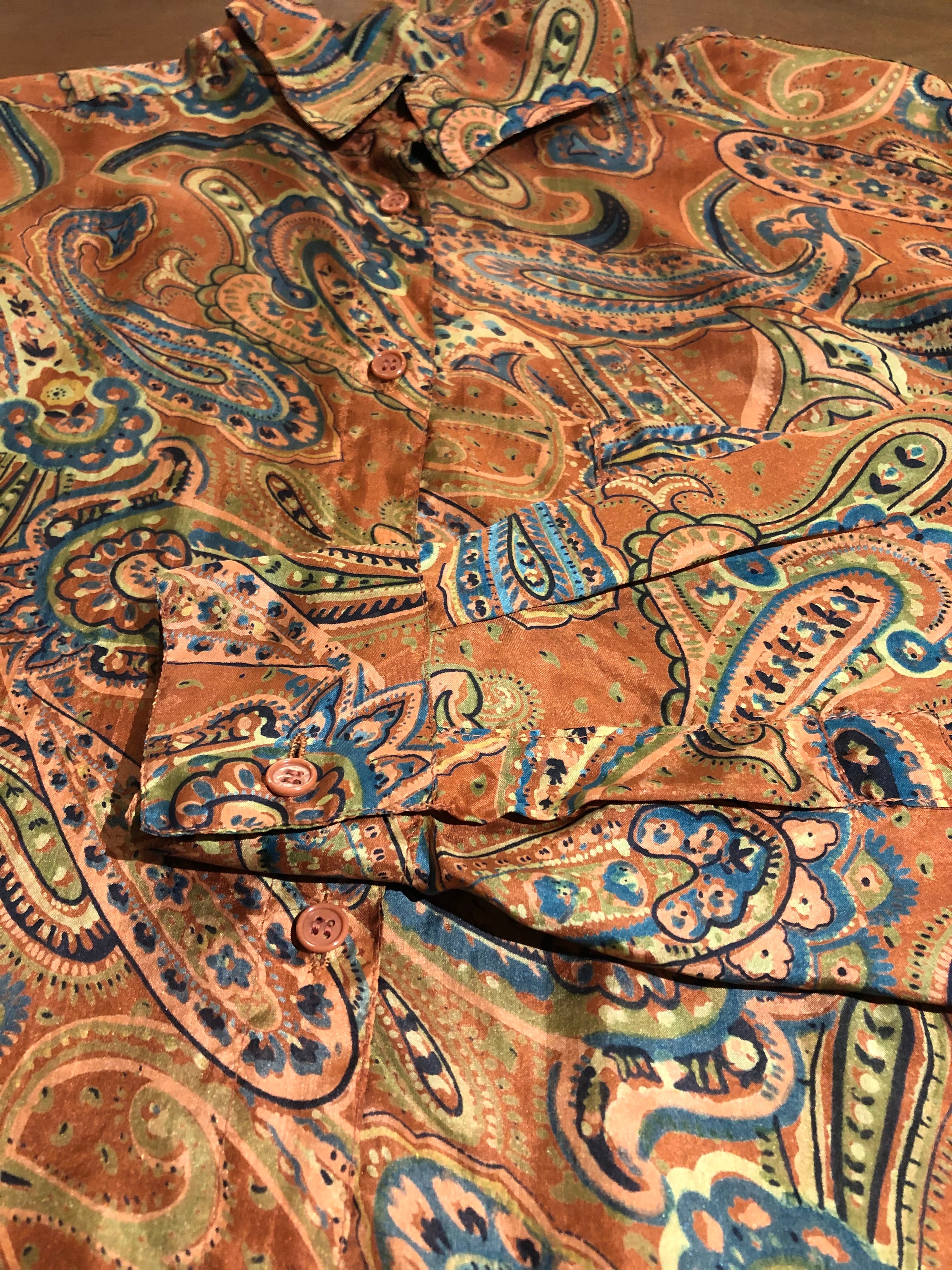「EU 70〜80's vintage」 multi color paisley pattern silk shirt