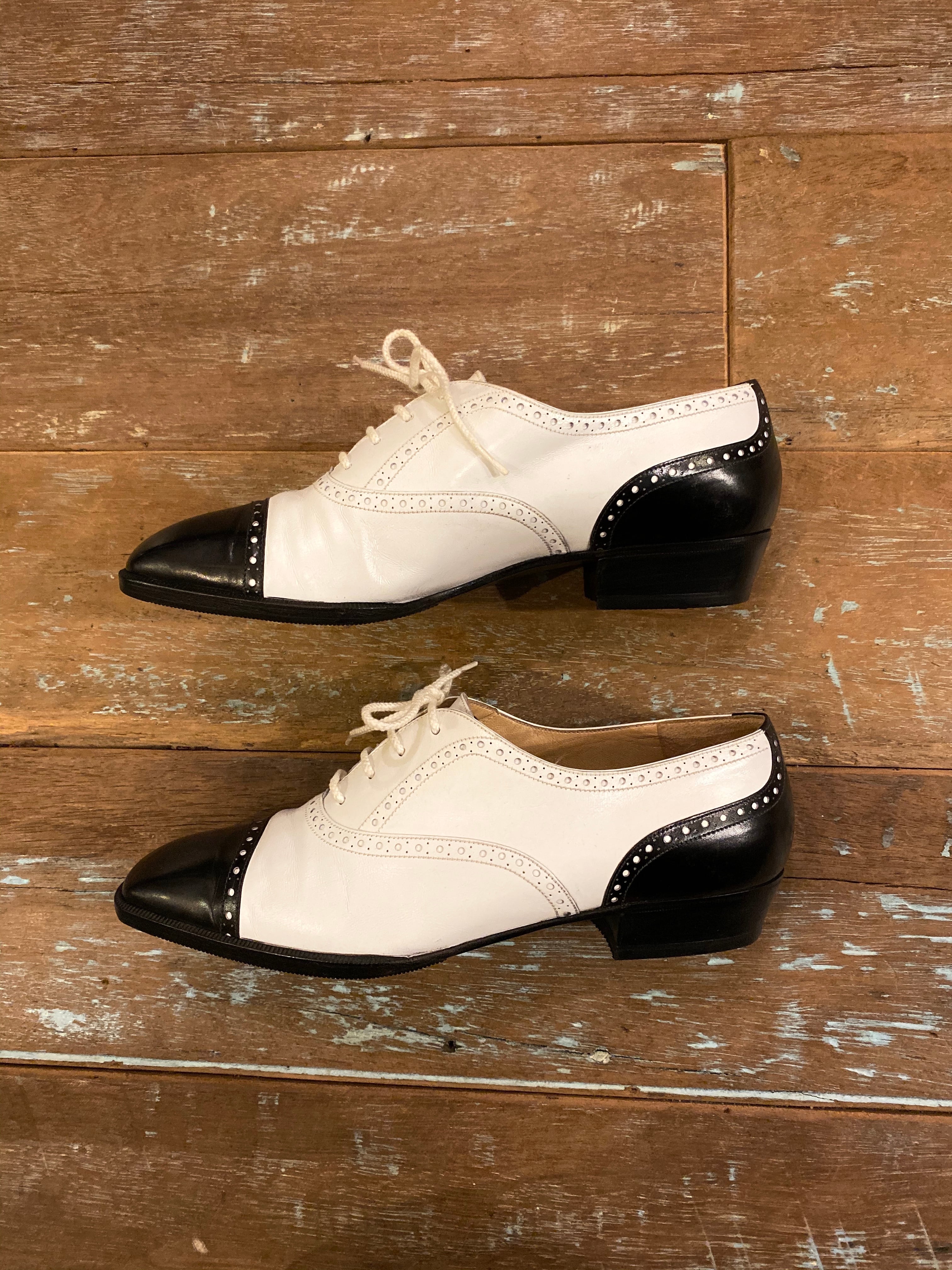 「CELINE」black&white punching leather combination shoes