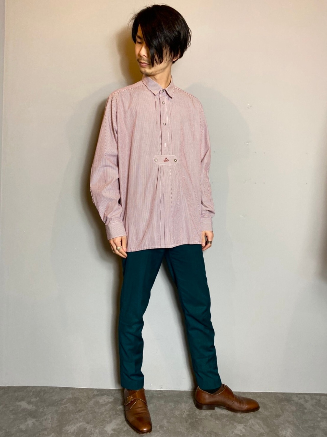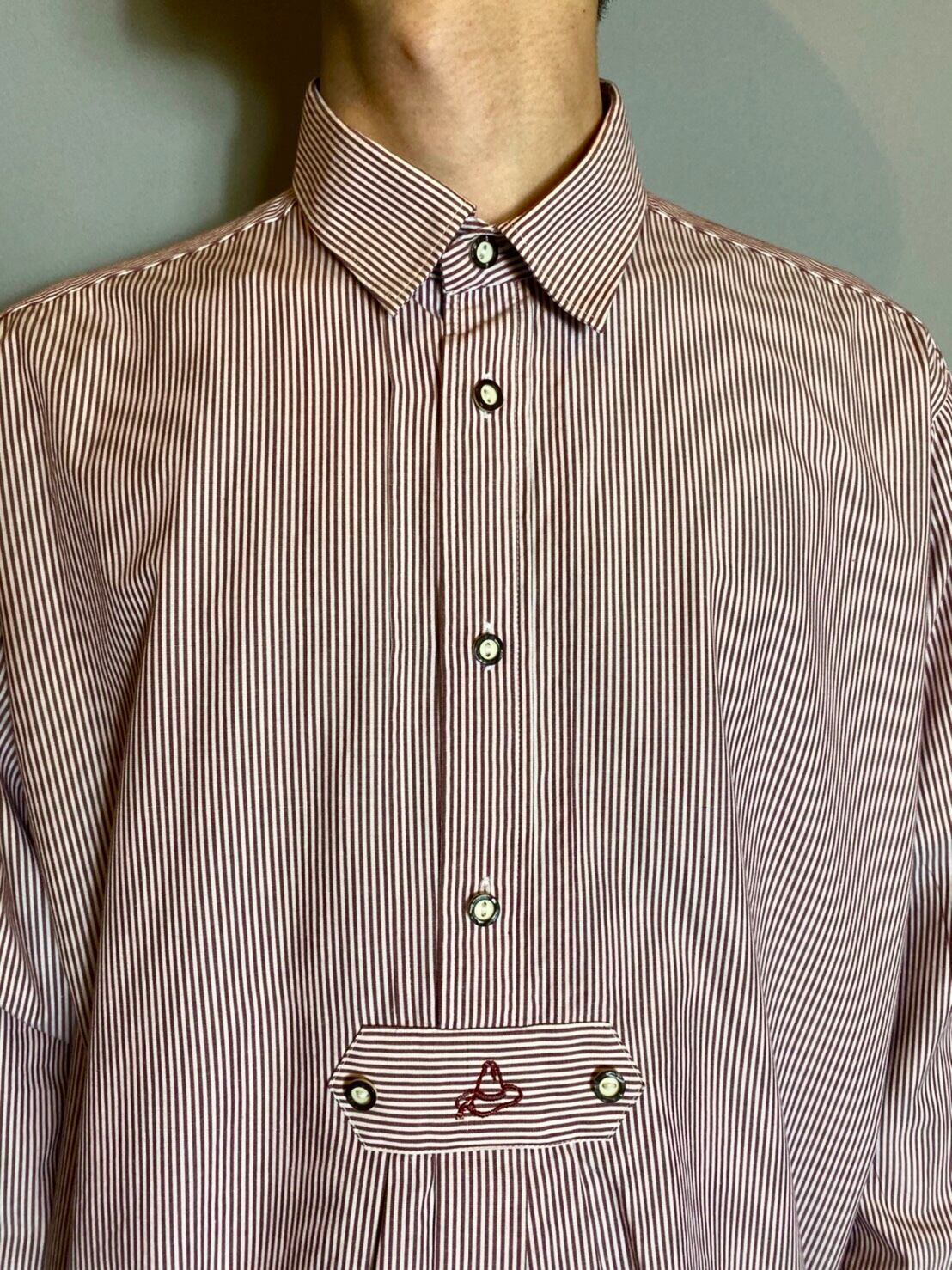 ボルドーストライプのチロリアンシャツをご紹介致します。