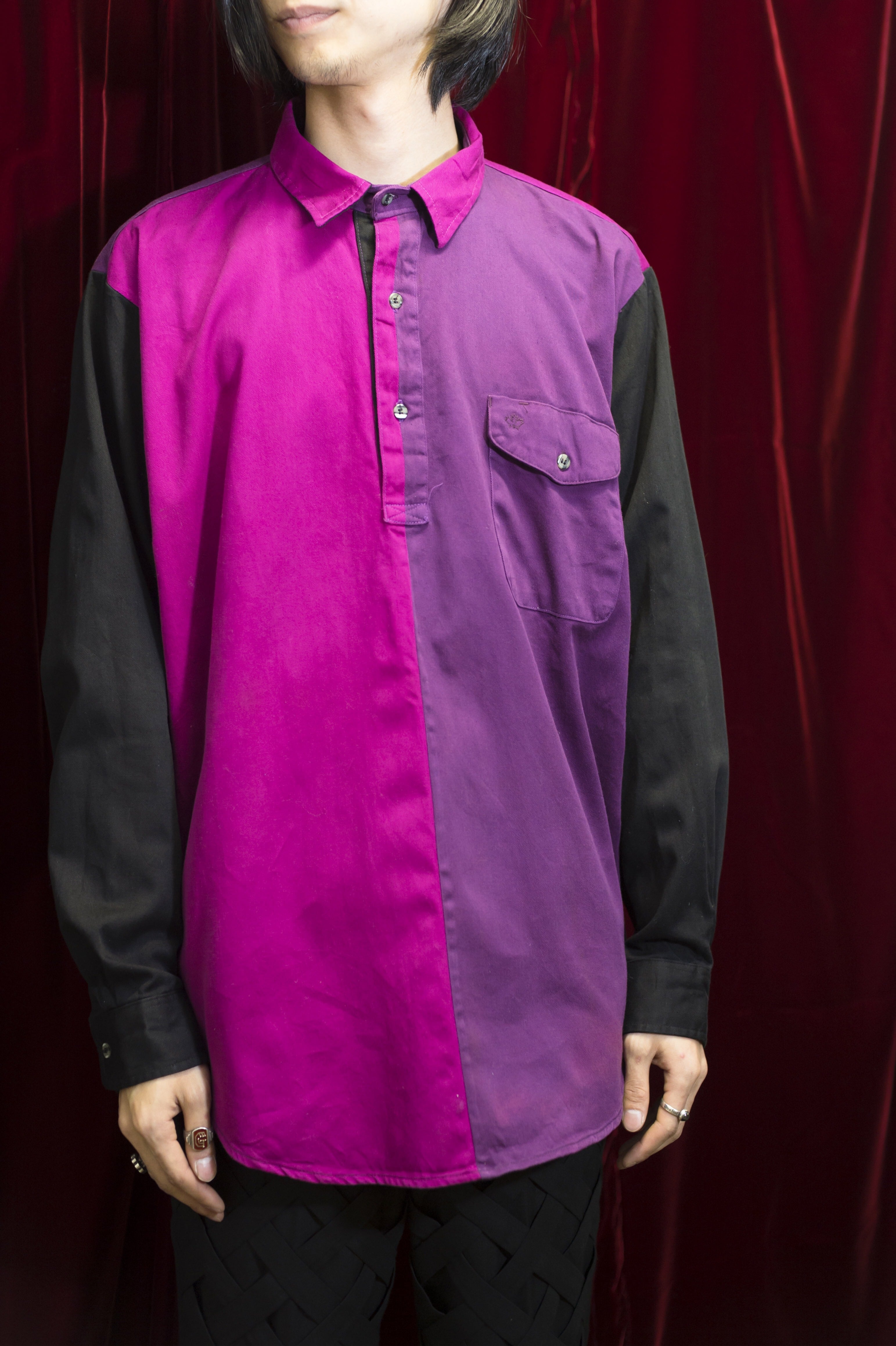PINK×PURPLE×BLACKの三色からなるカラーブロッキングが魅せる、プルオーバーコットンシャツ。