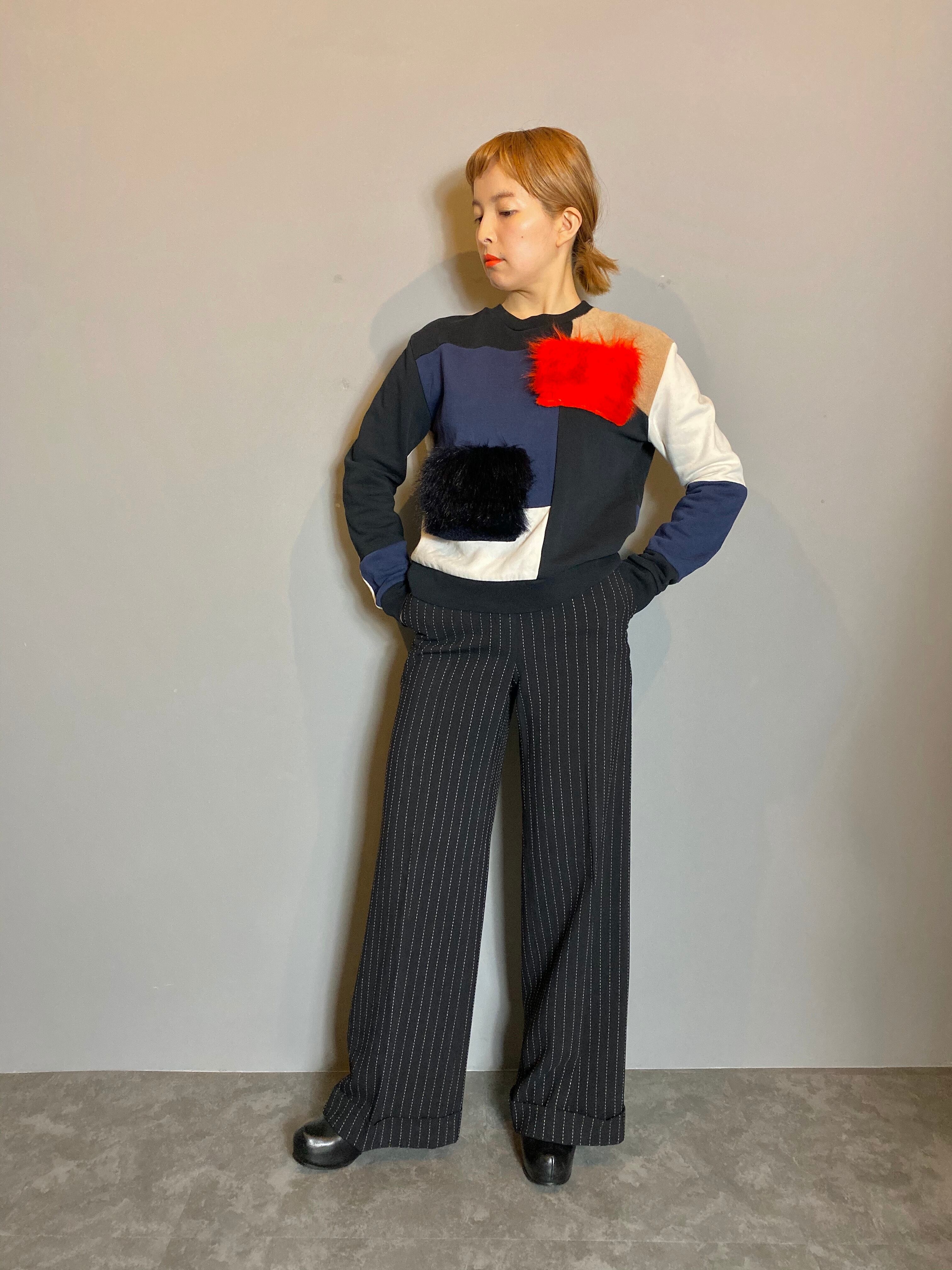 目の覚めるようなユニークなカラーミックス、ファーがまるでアートのようにデザインされたMSGMのスゥェットトレーナー。