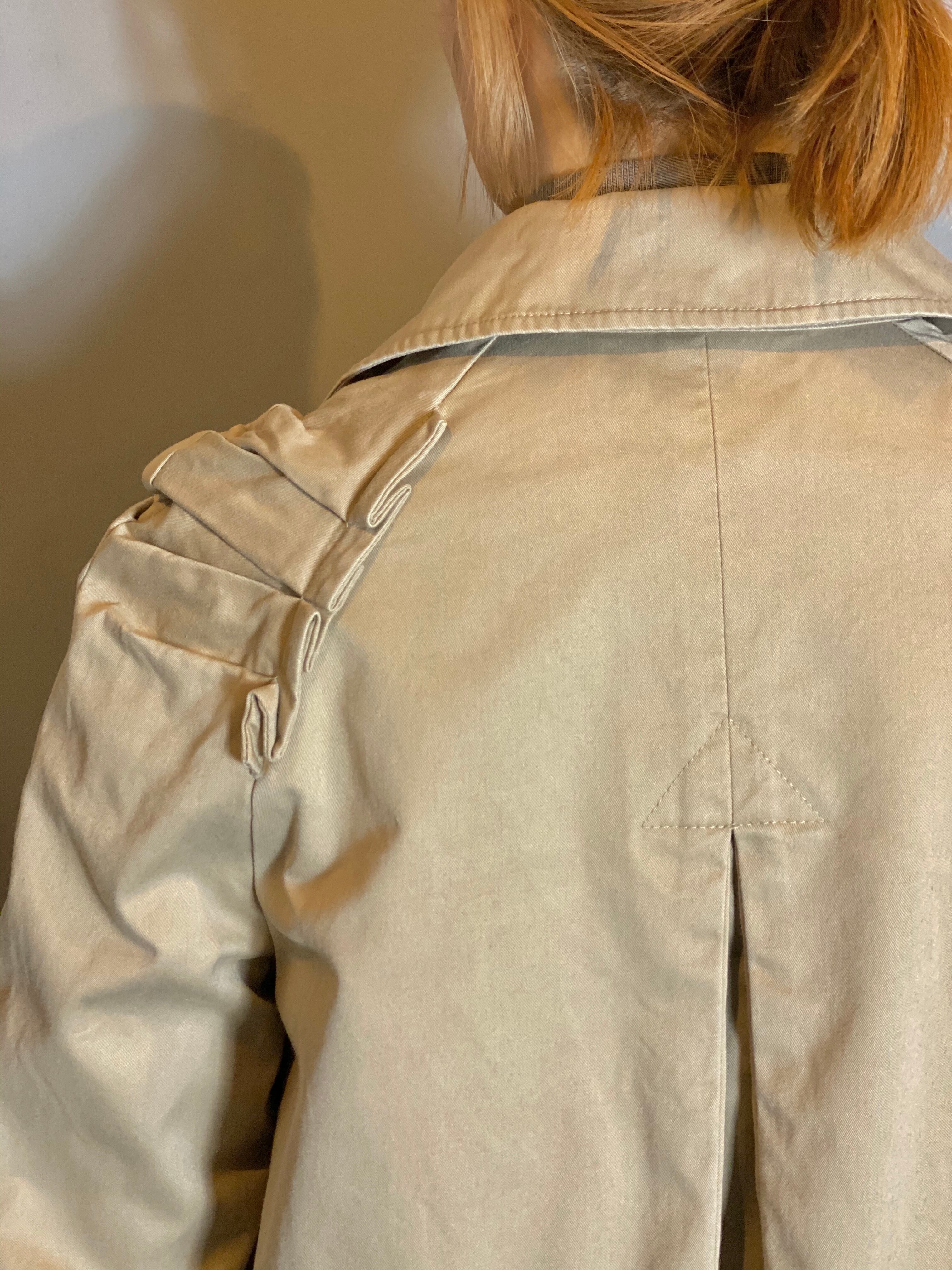 きちんとトレンチらしいディティールは入ってクラシカルさを出しているものの、捻りのきいたクールなデザインです。