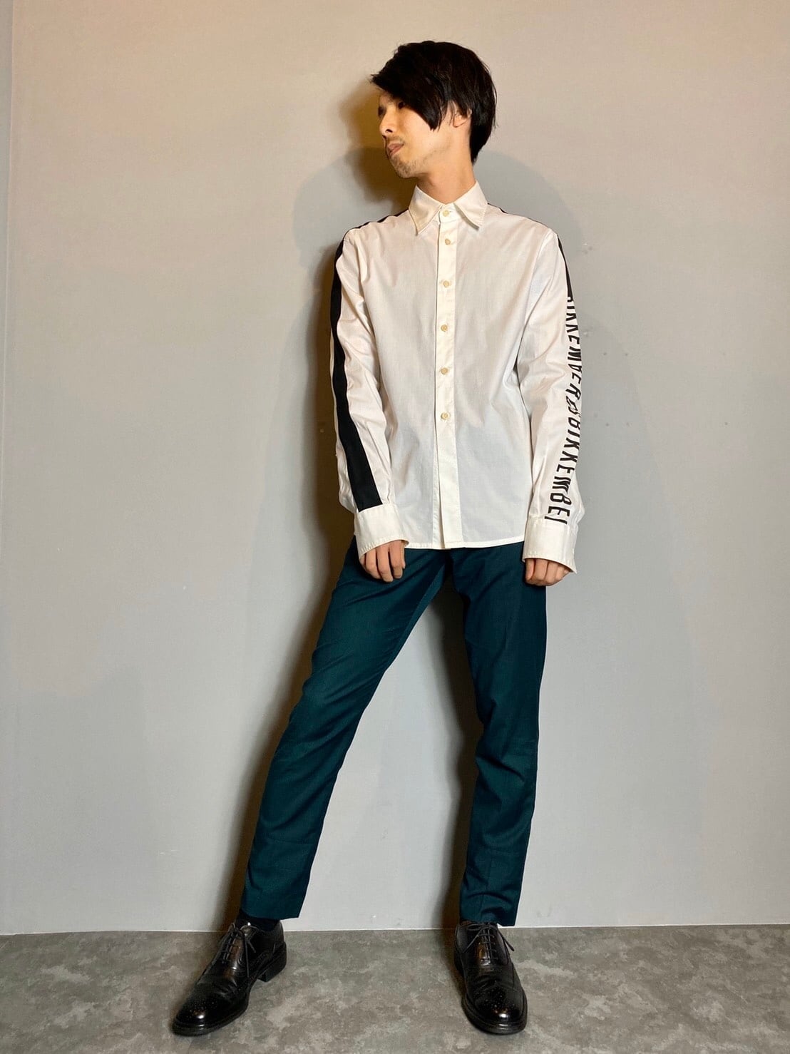 10年以上前のコレクションのデザインなのに、現代のトレンドを予測したかのように、ストリートモードに仕上がったホワイトシャツ。