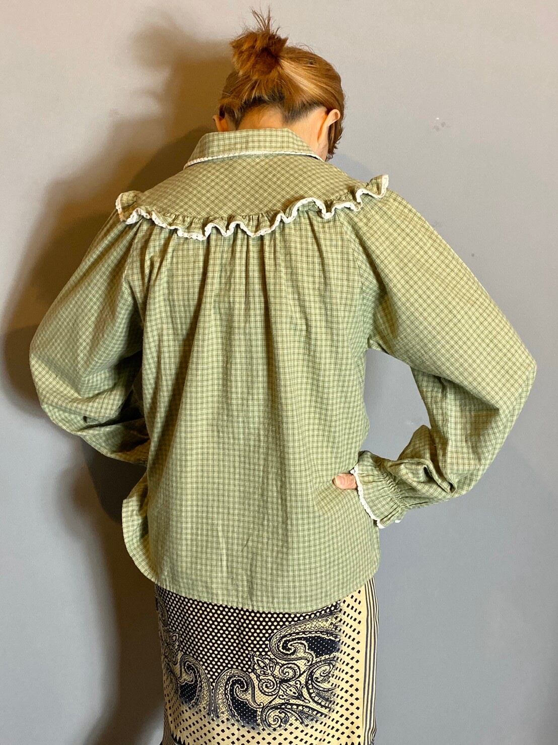 「FRANCE 70〜80's vintage」 green check frill design blouses