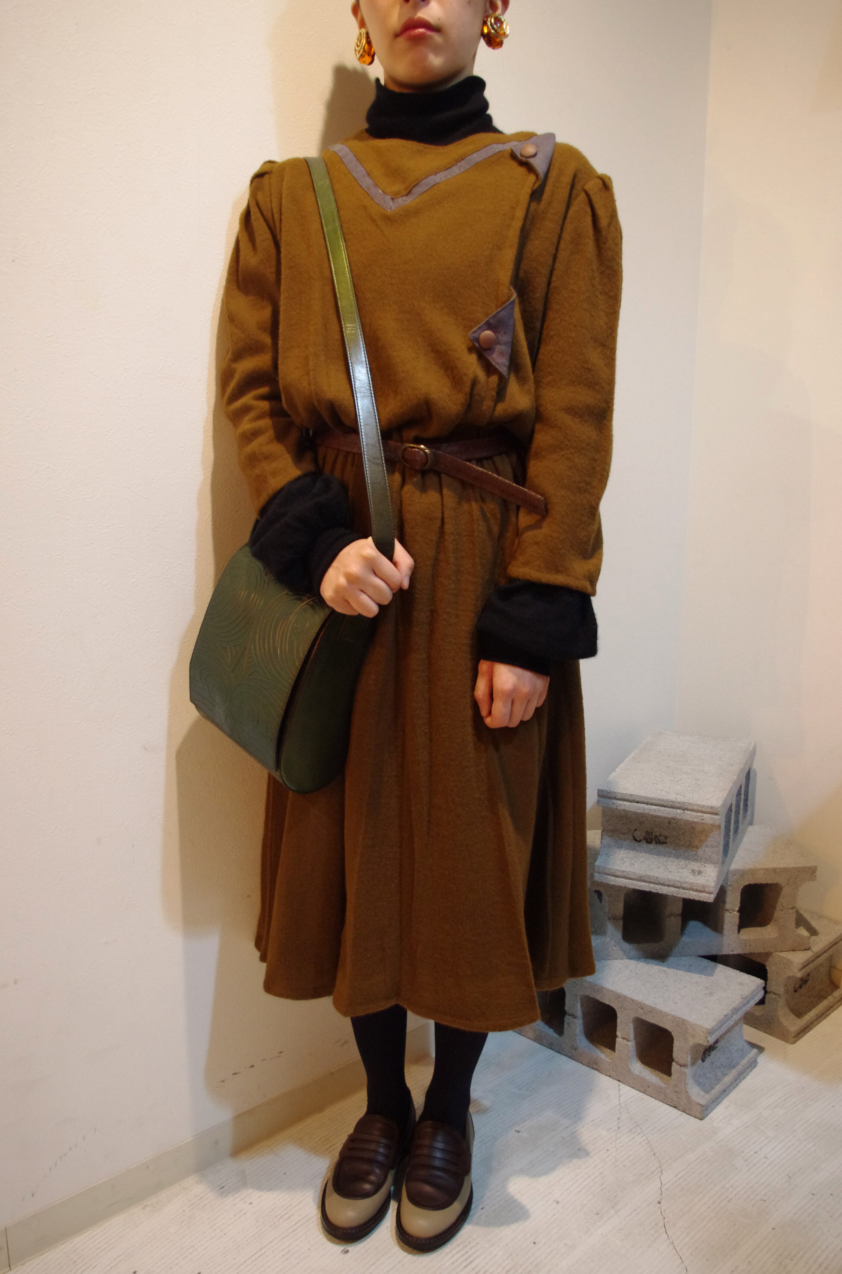 薄手のニット素材で作られた、どこかフォークロアな雰囲気を感じるワンピースは、70年代に作られたもの。