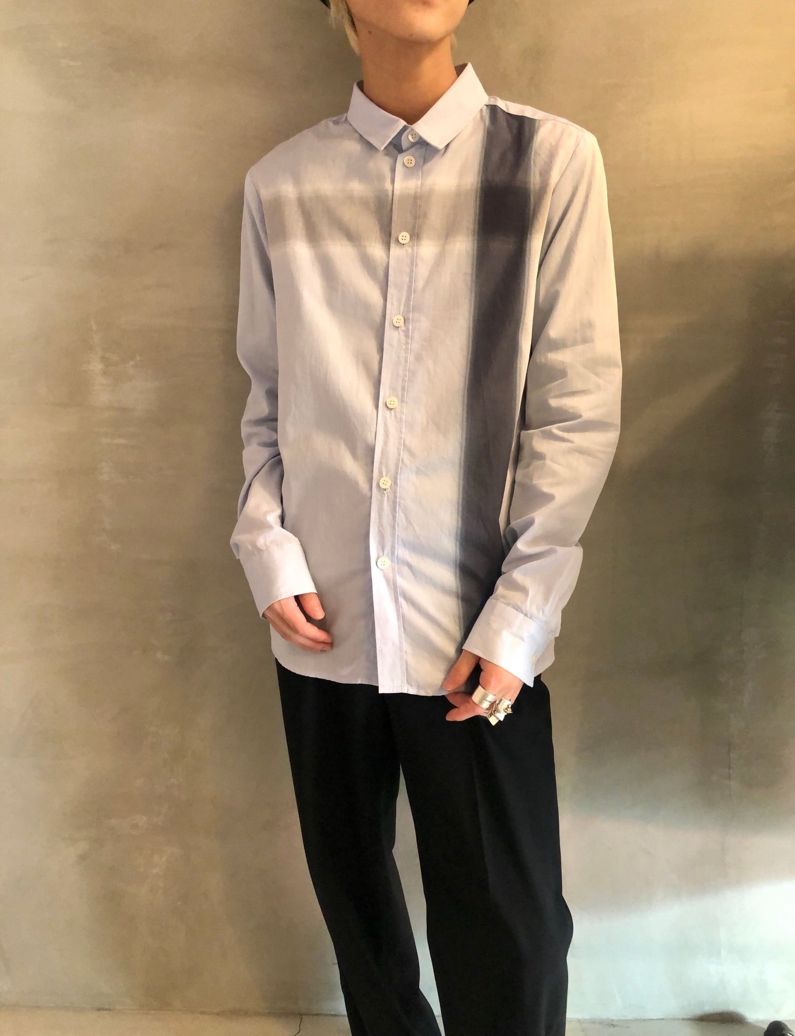「STEPHAN SCHNEIDER」blue x gray x navy cotton design shirt