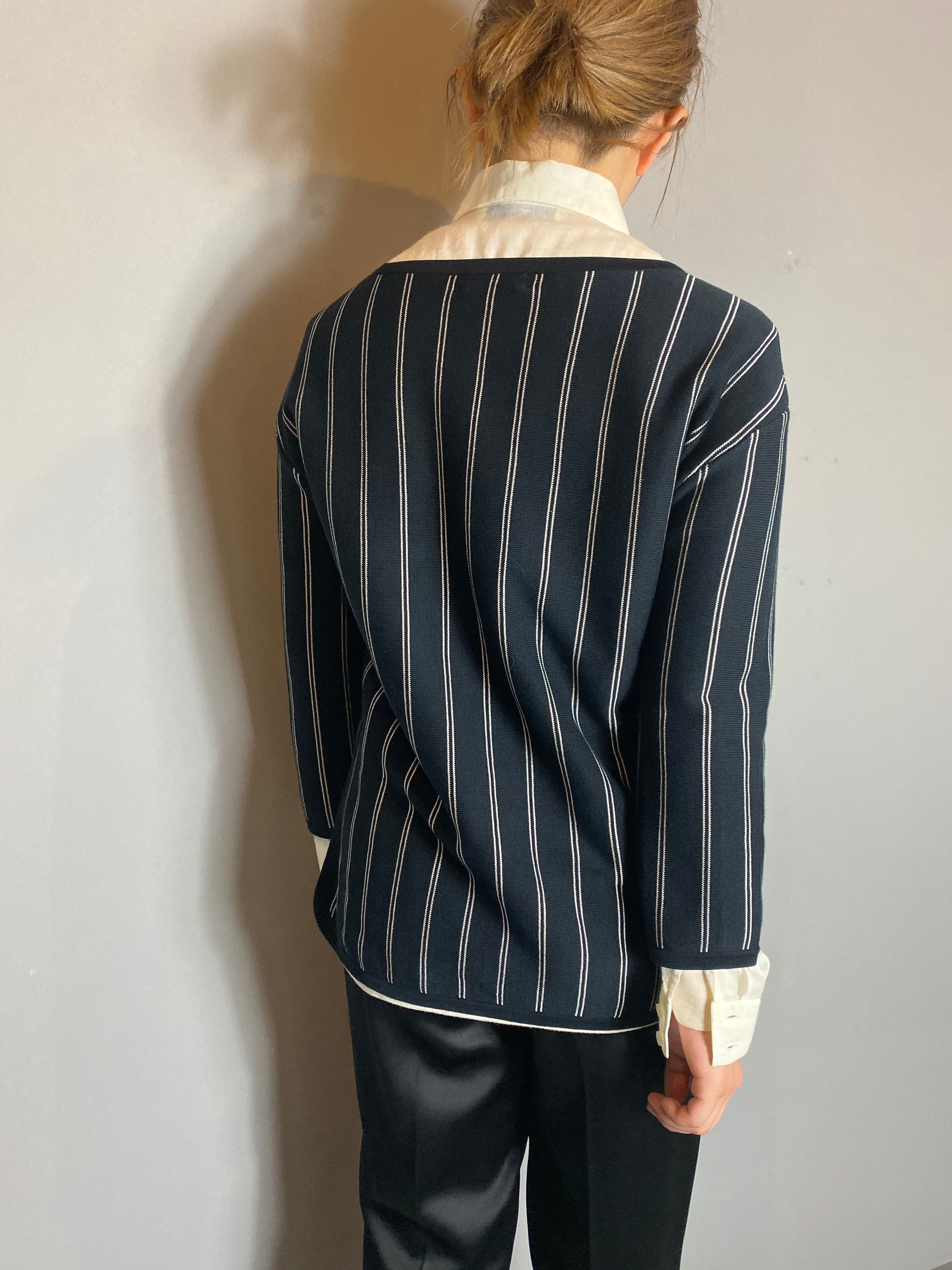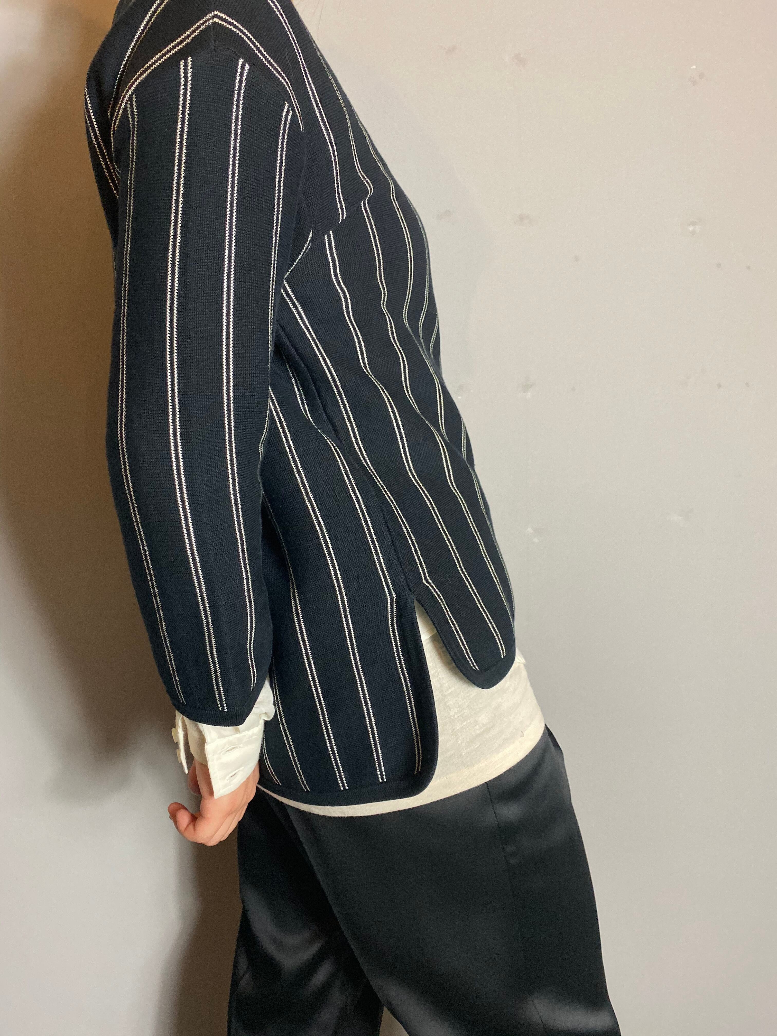 定番のダークネイビーと白のストライプはクールな印象を与えます。