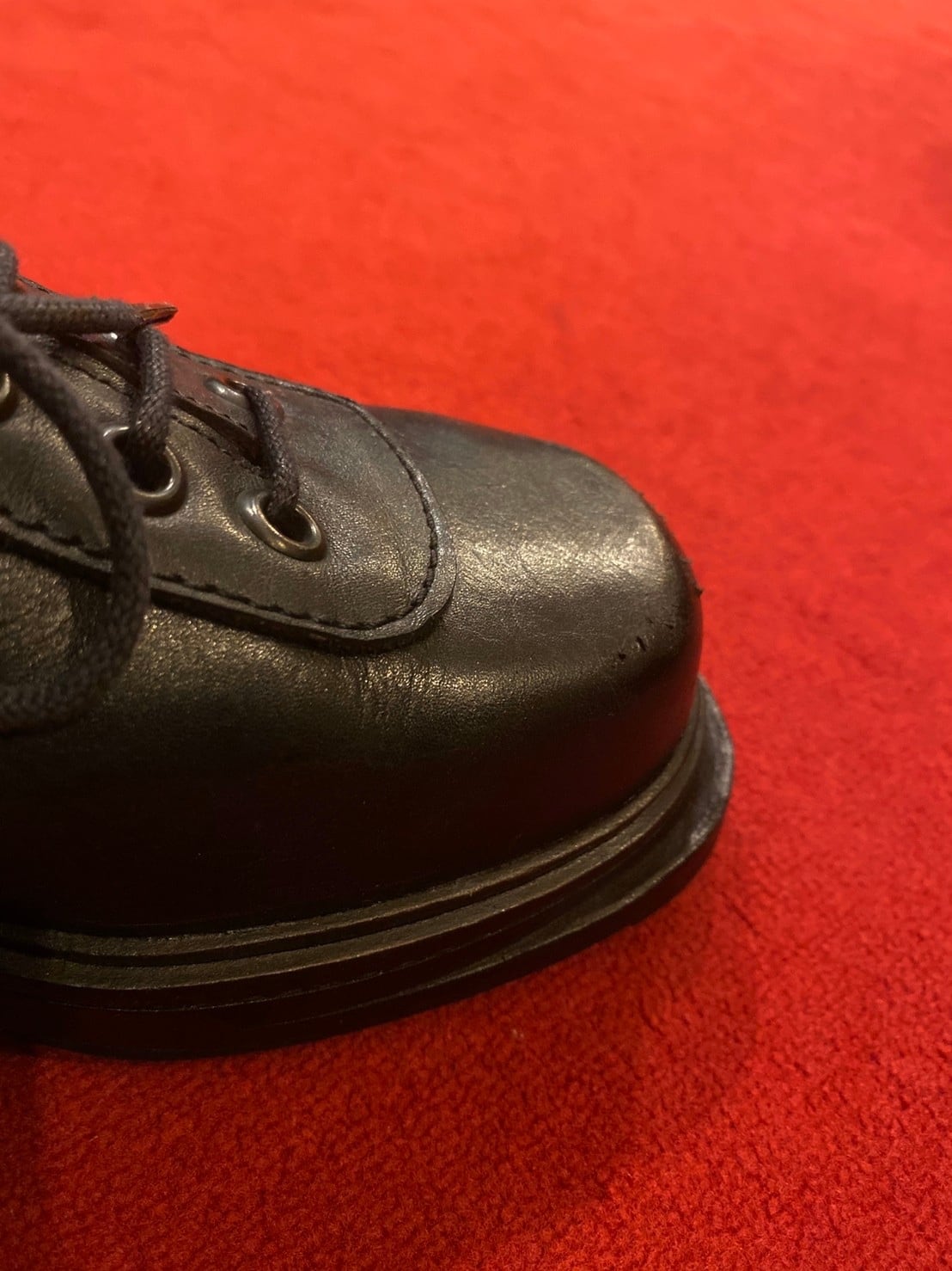 強さを感じるスクエアなシルエットにトゥはプレートが入っており、ソールにも重みが。