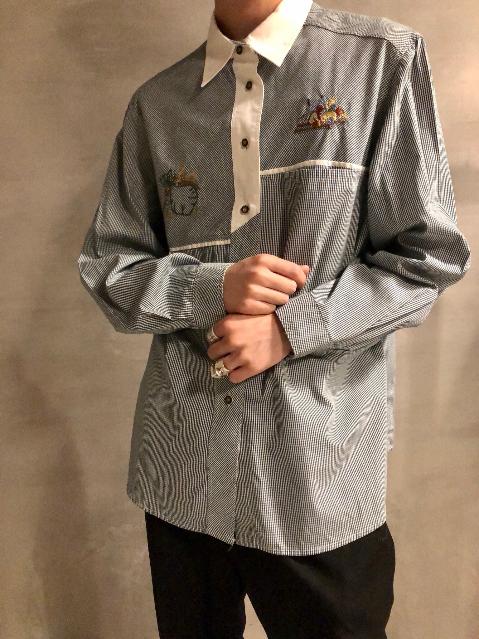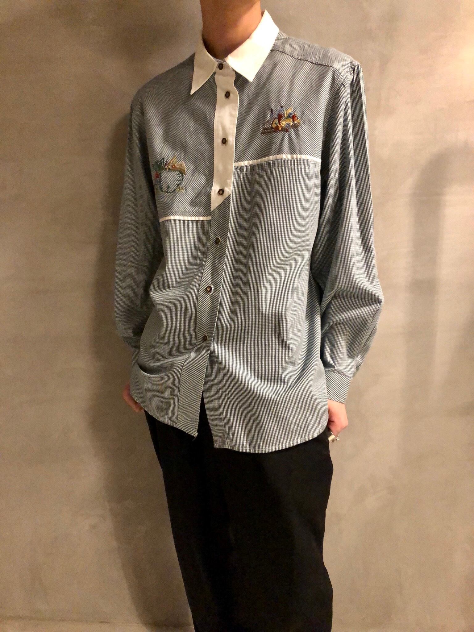 「AUSTRIA 70's Vintage」 bi-color embroidery design tyrolean shirt