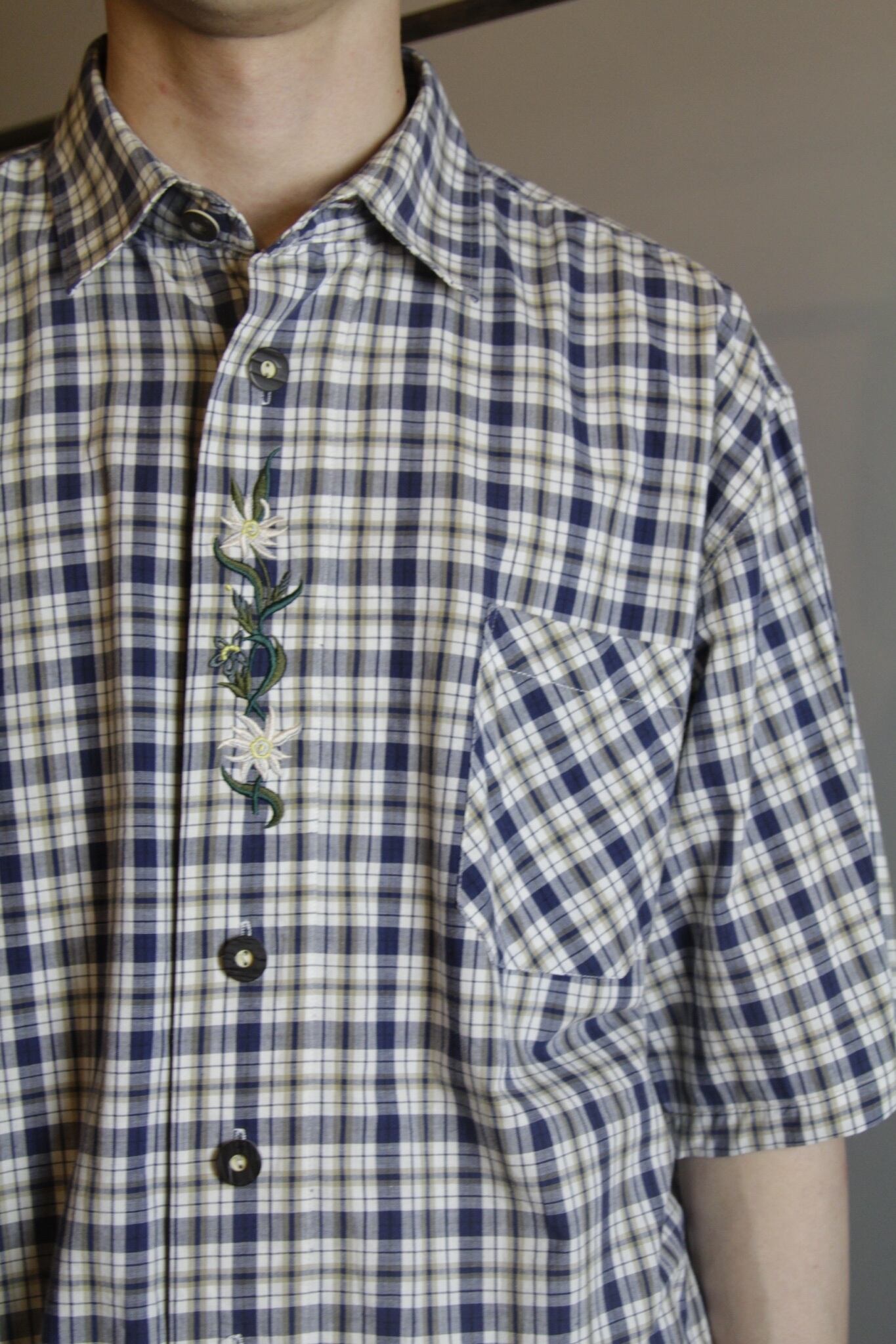 「AUSTRIA 80's Vintage」 cotton check embroidery tyrolean shirt