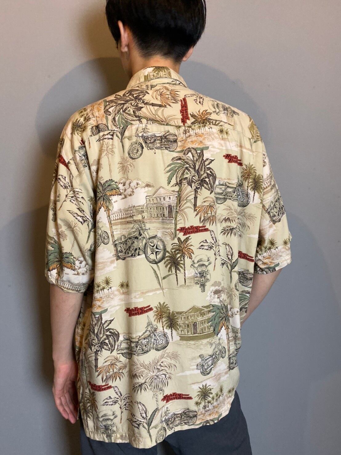 「Harley Davidson」 rayon pattern all-over aloha shirt
