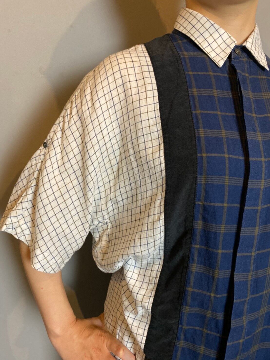 2種類のチェックに黒のライン。変則的な切り替えがユニークなデザイン◎
