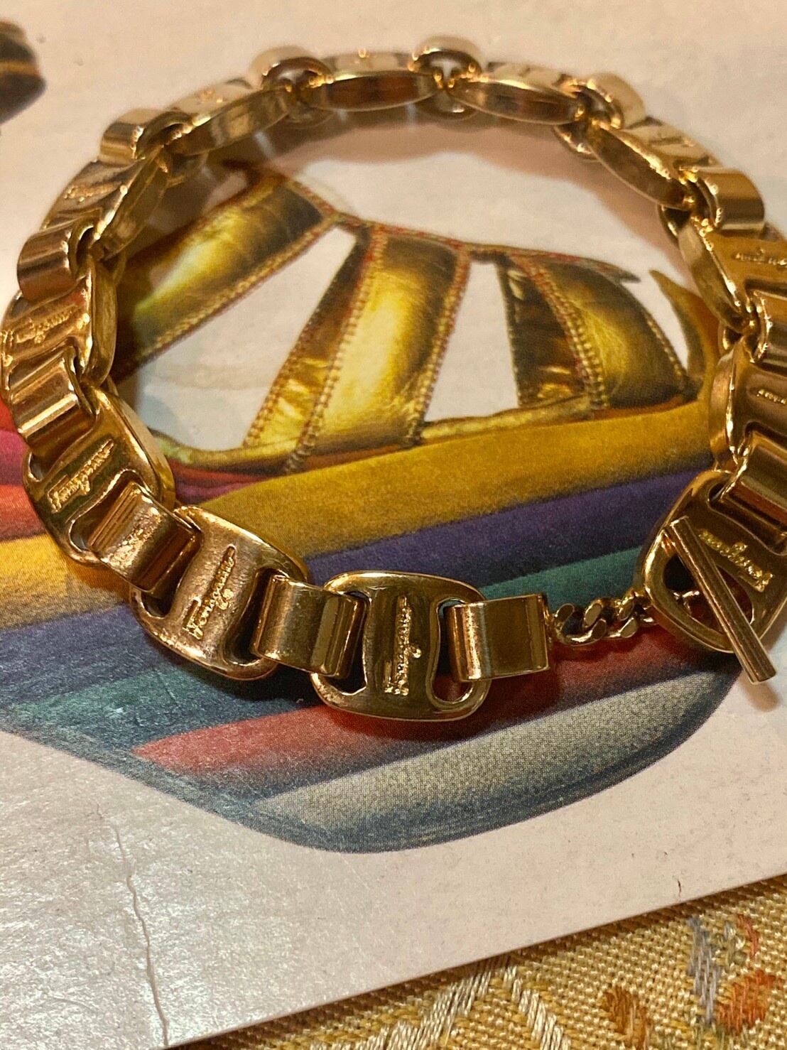 フェラガモの代表的なモチーフの1つヴァラを連ねたチェーンブレスレットをご紹介致します。
