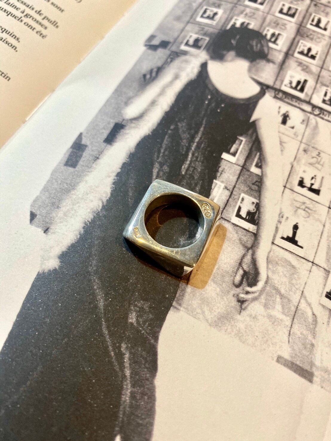 フェラガモより、シルバー素材のアレンジの効いたスクエア型モチーフのリングをご紹介します。
