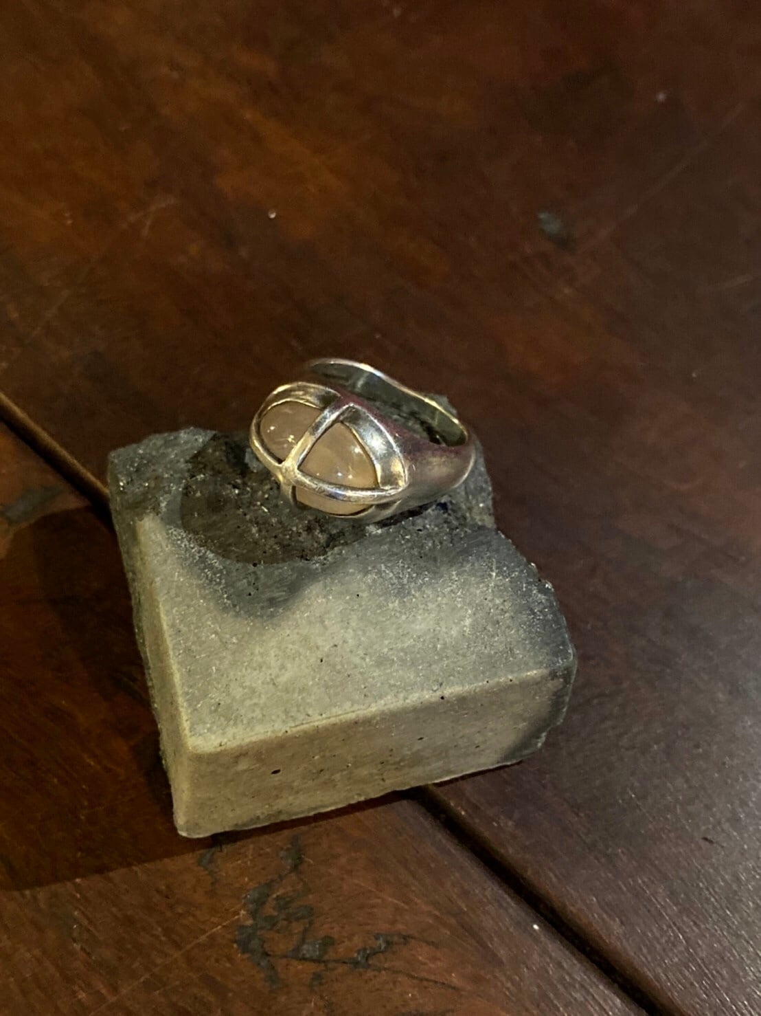 ジャンポールゴルチエより、無垢なシルバーと艶やかなストーンのエッジが効いたリングをご紹介致します。