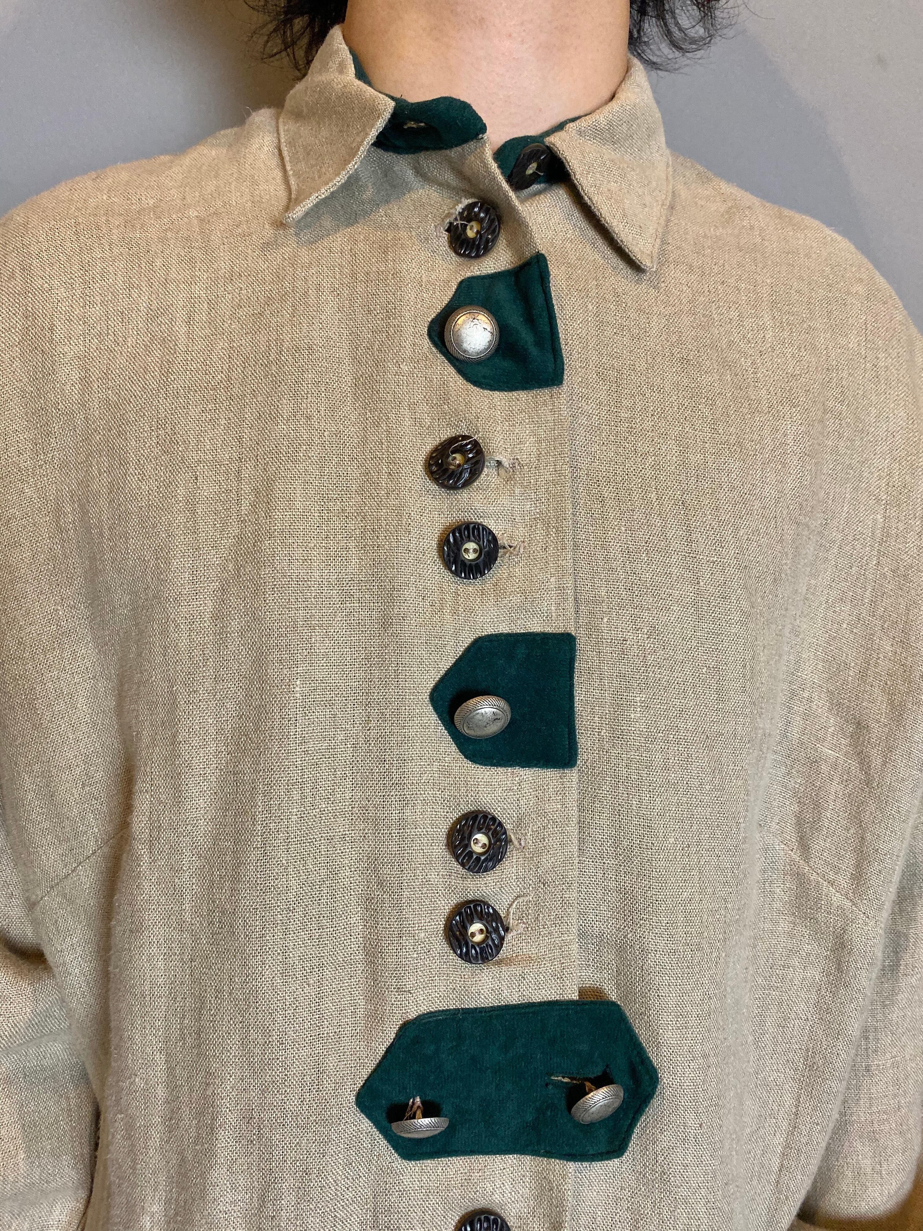 「AUSTRIA 70〜80's vintage」 linen button design tyrolean shirt