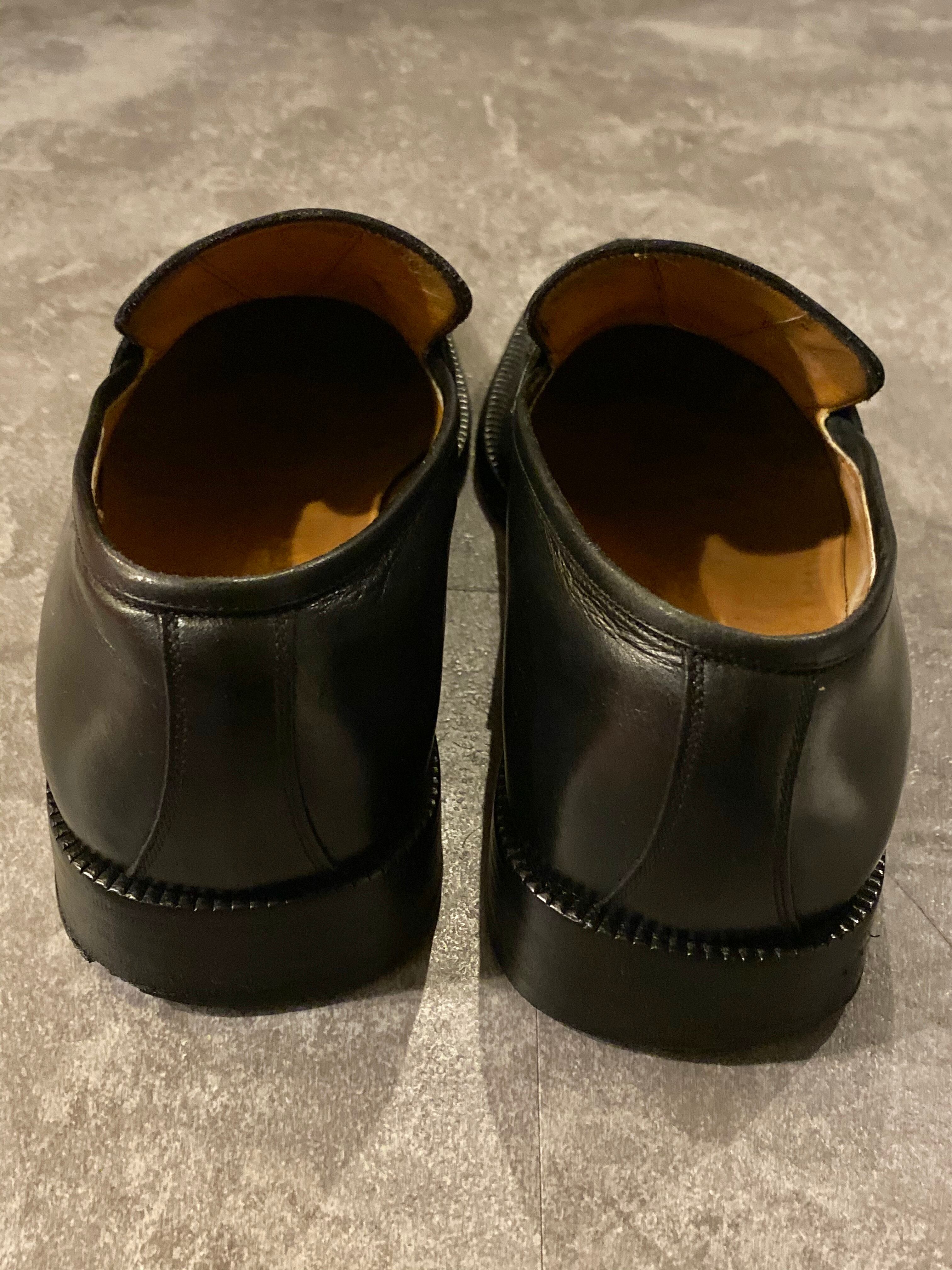 アッパーからソールに掛けてコバを出す様な段になっており、さりげない拘りや現行品でも人気を誇るフェラガモの名作ローファーです。
