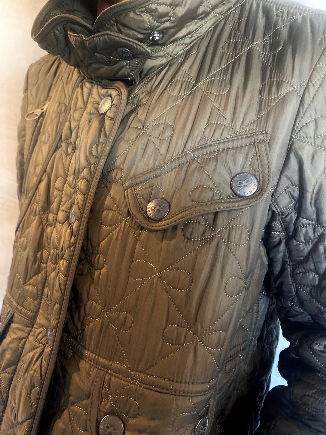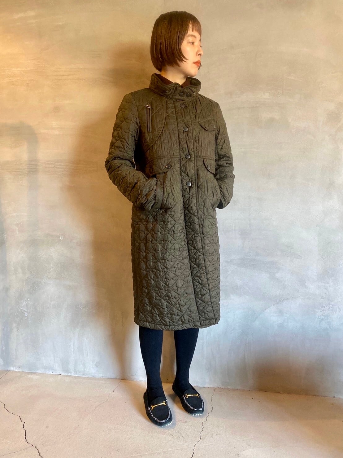今回ご紹介するのはレディースのキルティングコート。ステッチはハイセンスなリボン柄。