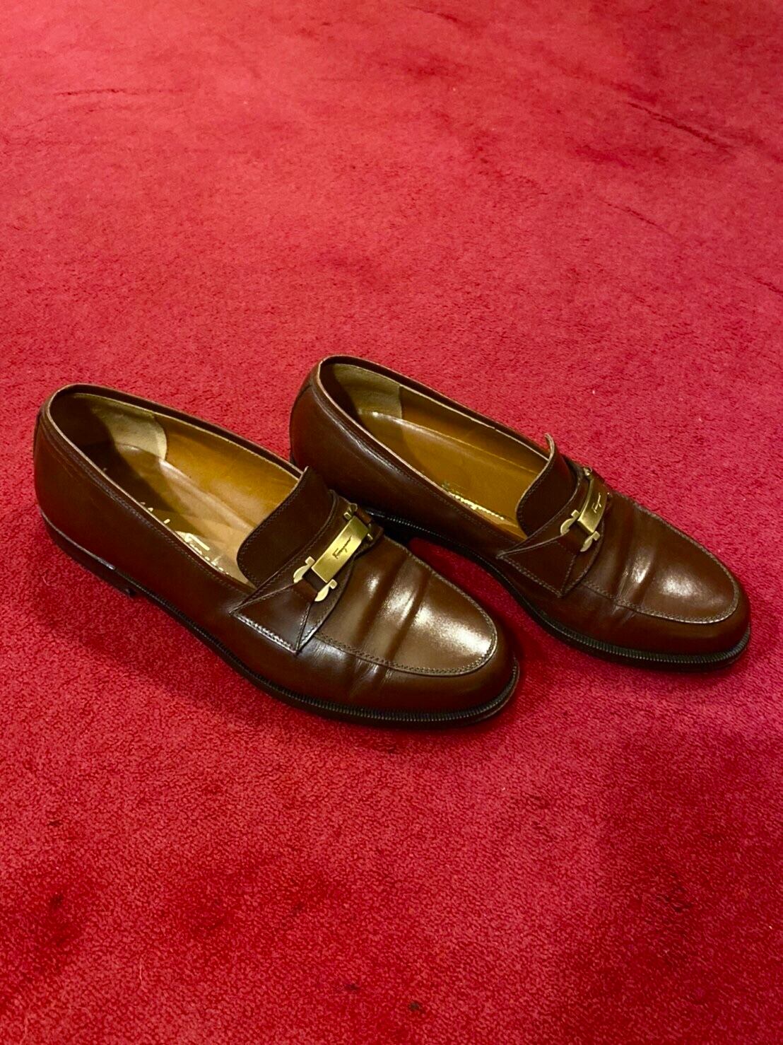 「Salvatore Ferragamo」 brown leather logo design loafers