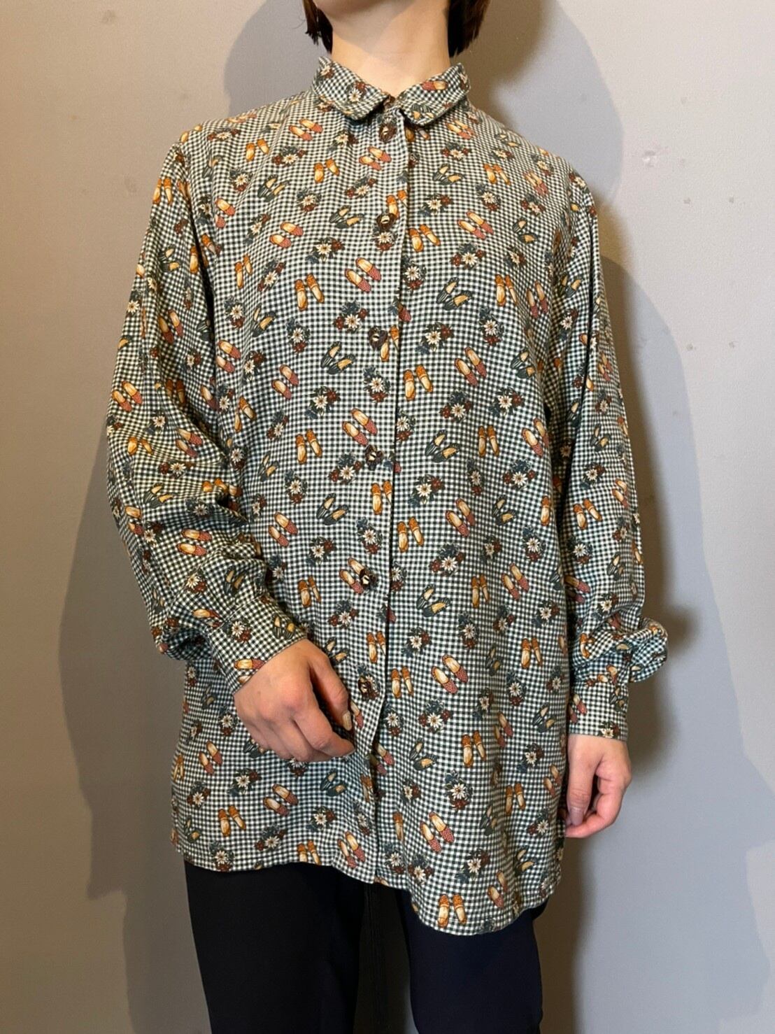「AUSTRIA 70〜80's vintage」 cotton pattern all over tyrolean shirt