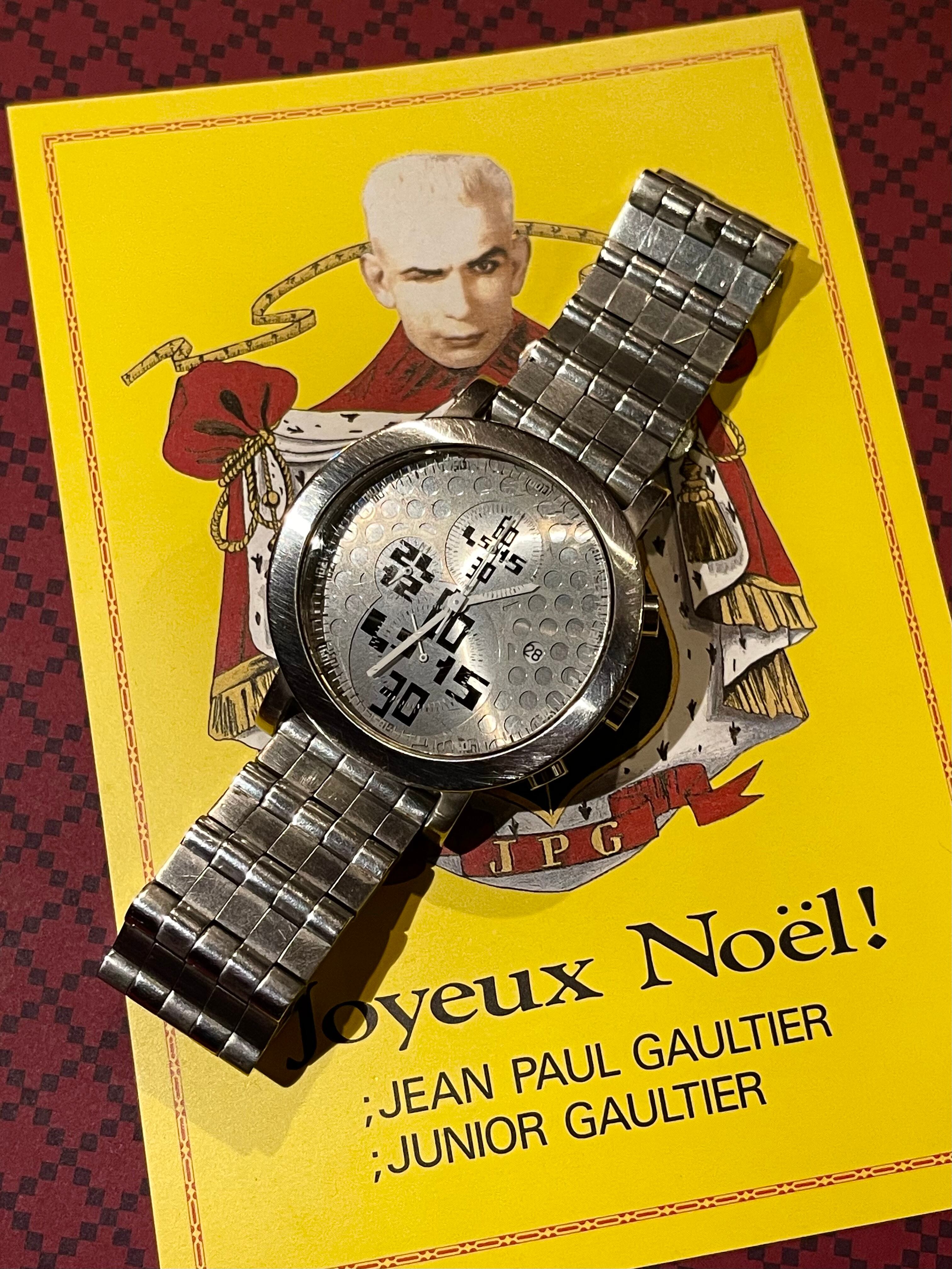 ジャンポールゴルチエより、ベゼルが立体的な円弧状のボリューム感のあるヴィンテージウォッチをご紹介致します。