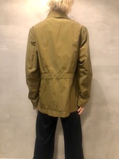 色味とシルエットが相まってミリタリーテイストなニュアンスを感じる落ち着いた雰囲気に、直線的な切り替えを入れた構築的なデザインがユニーク◎