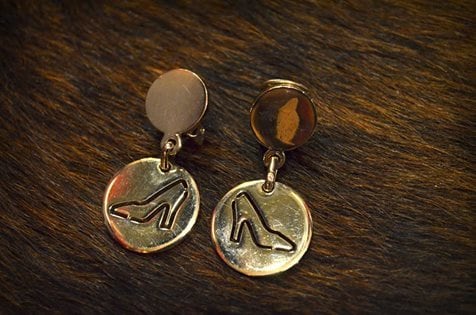 フェラガモのヒールシューズを掘ったシルバーのイヤリング。
