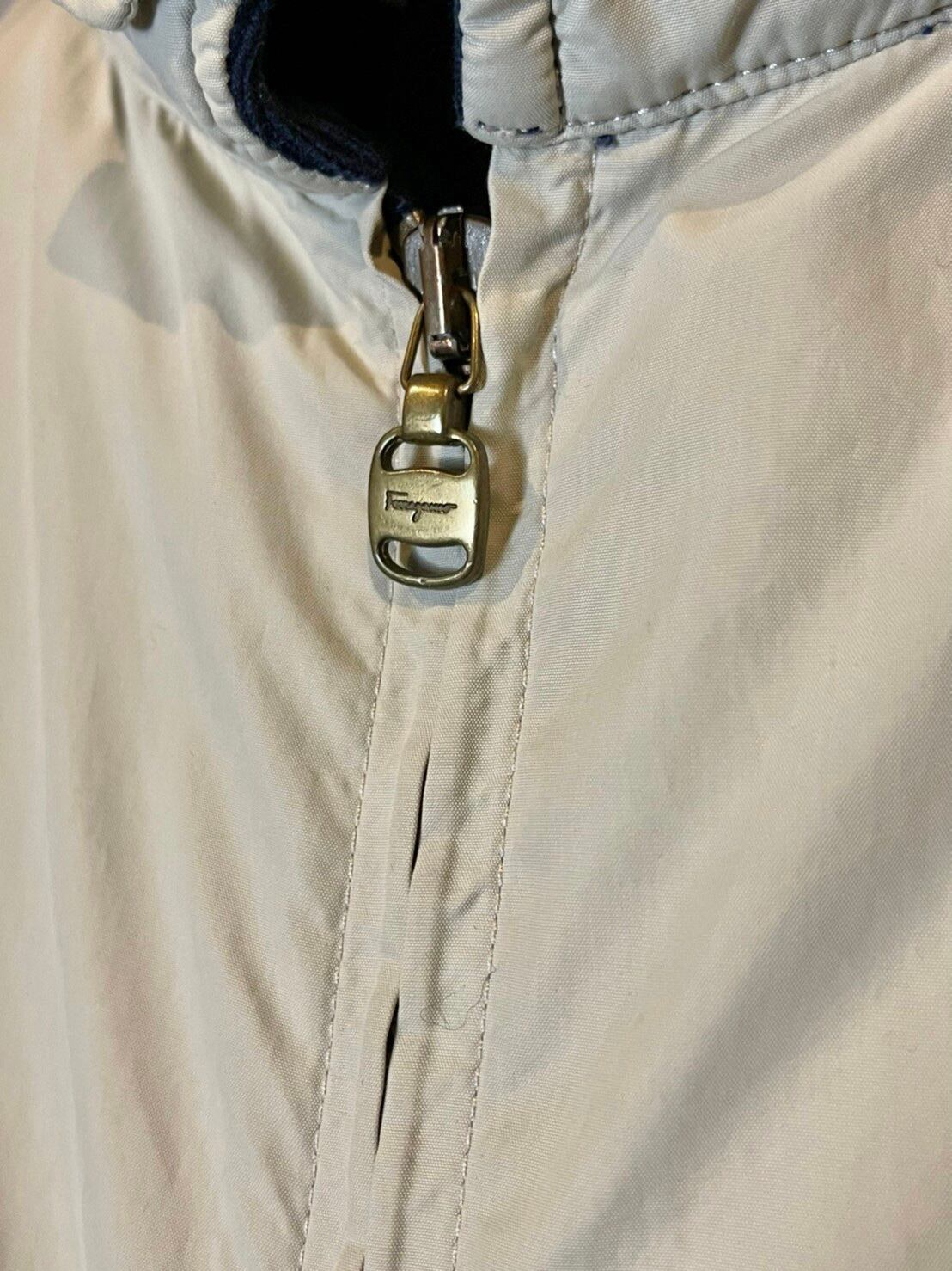 サルヴァトーレ・フェラガモより薄いベージュにネイビーのバイカラージップブルゾンをご紹介致します。