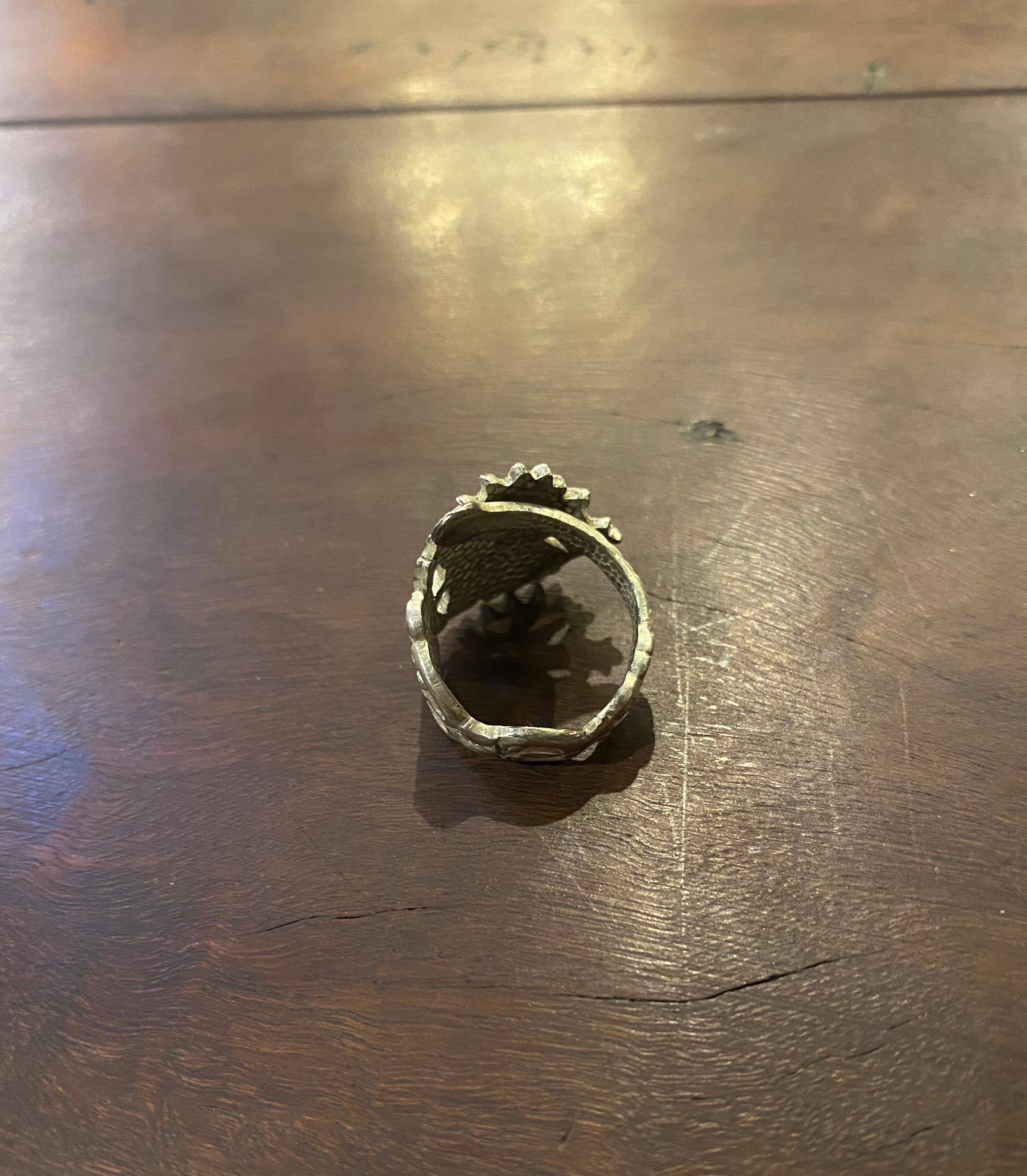 こちらは明るめのシルバーを加工したリングとなっており、立体的な装飾がヨーロピアンで高貴な雰囲気を醸し出します。