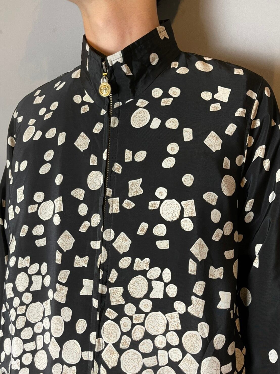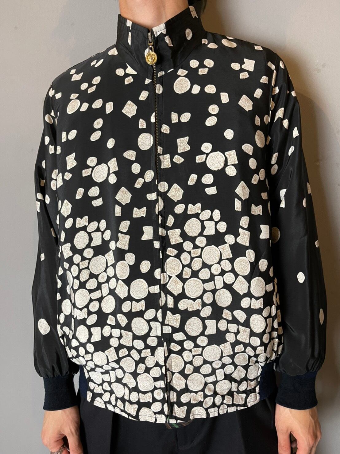 90'sヴィンテージのヴェルサーチよりモノトーンの総柄ブルゾンをご紹介致します。