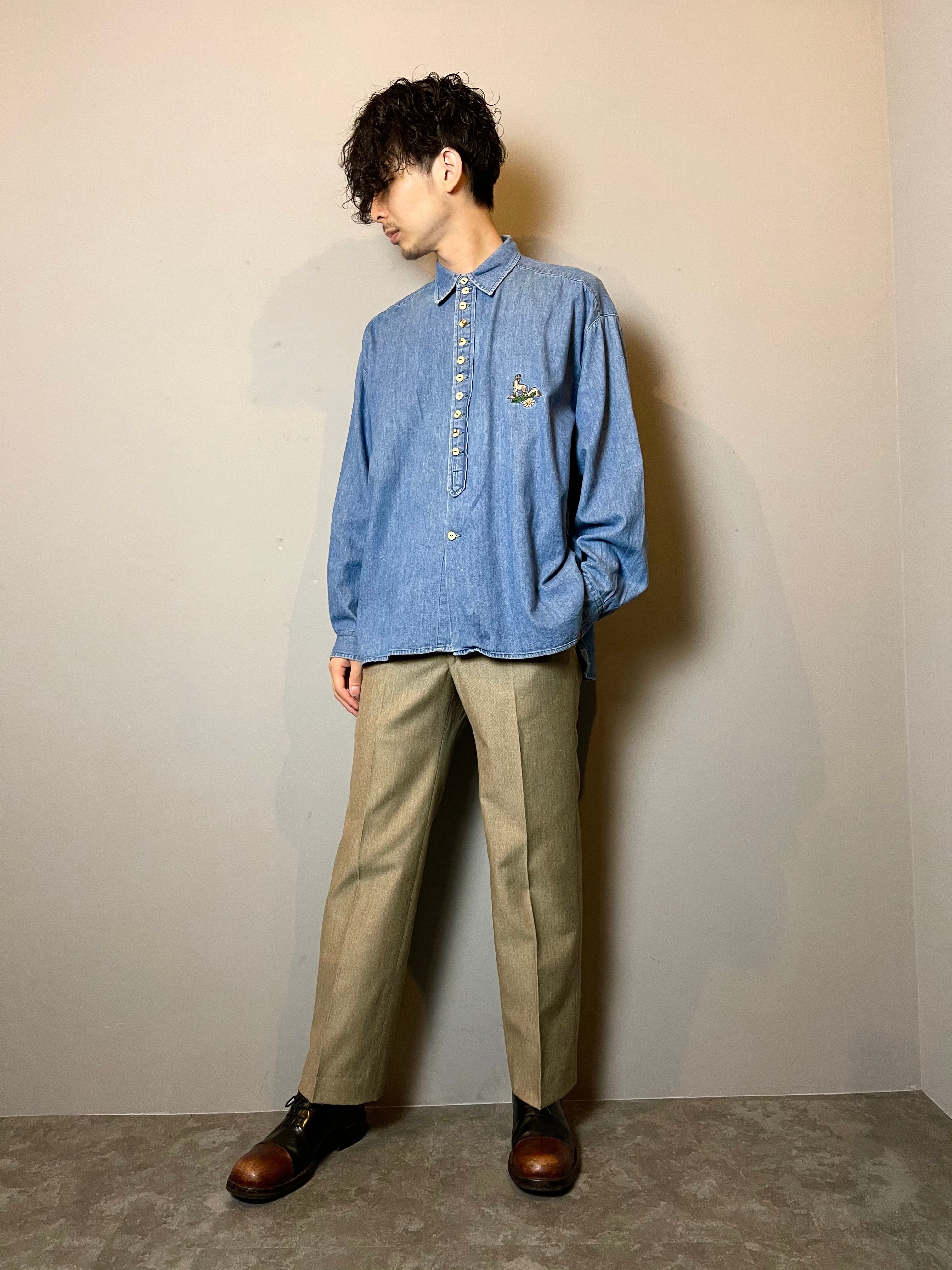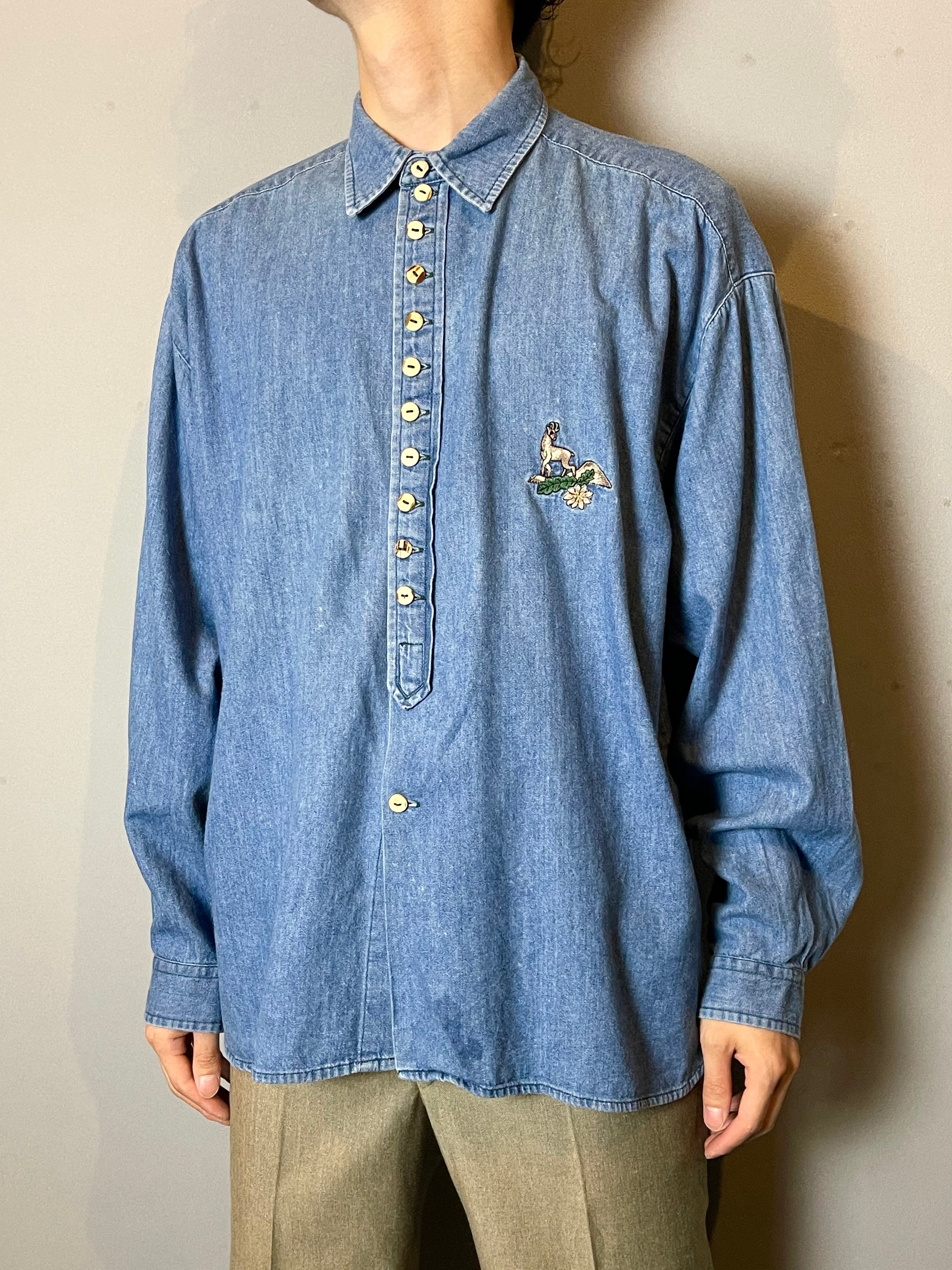 「AUSTRIA 70〜80's LODEN FREY vintage」 denim embroidery tyrolean shirt