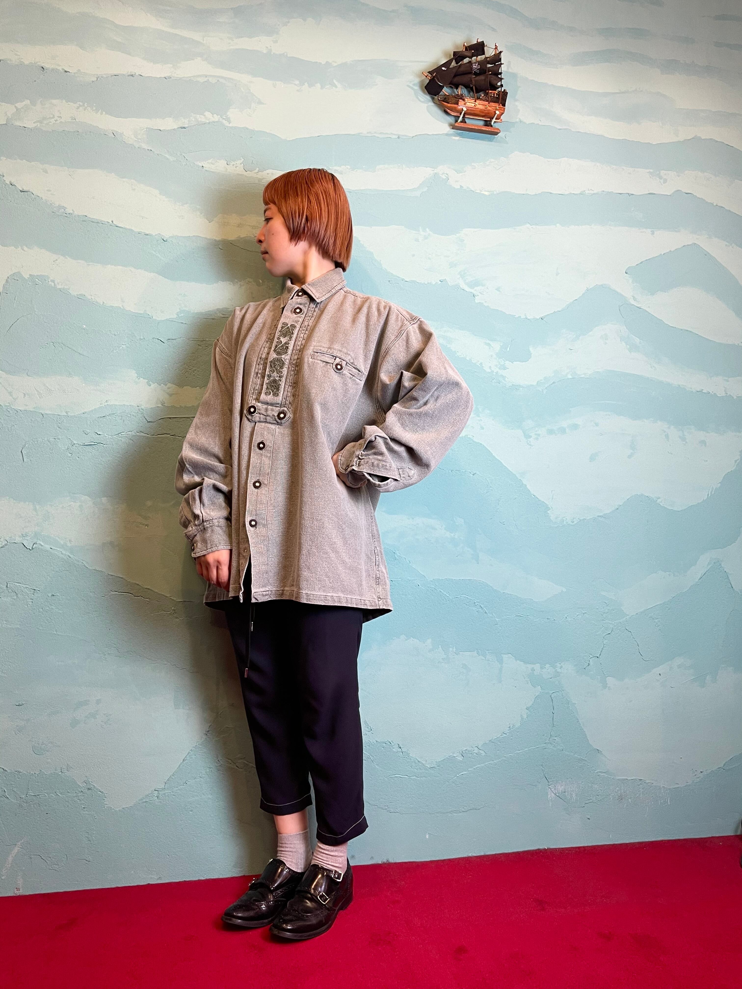 「AUSTRIA 70〜80's vintage」embroidery design tyrolean shirt
