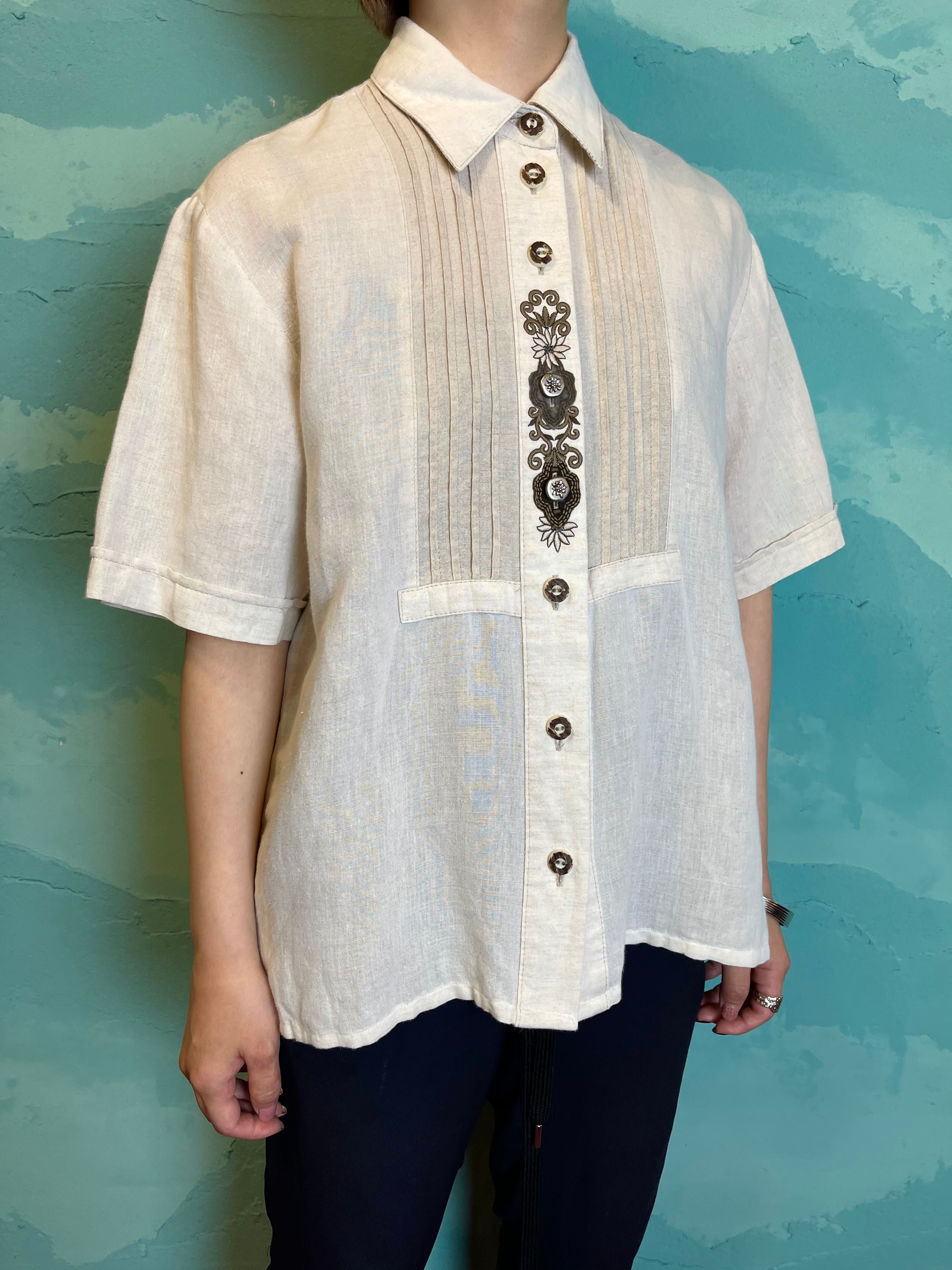 「AUSTRIA 60〜70's vintage」 linen pleats design tyrolean shirt