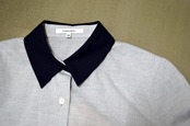 CARVENのソフトな肌触りいいコットン地のバイカラーブラウス。プレッピーでマニッシュなカラーミックスとは裏腹に、サイドに切り替えが入り身体に沿う華奢な作りは女性らしく品良くエレガント。レイヤードにも、潔く一枚で着ても良しのシーズンレスで使える一着。