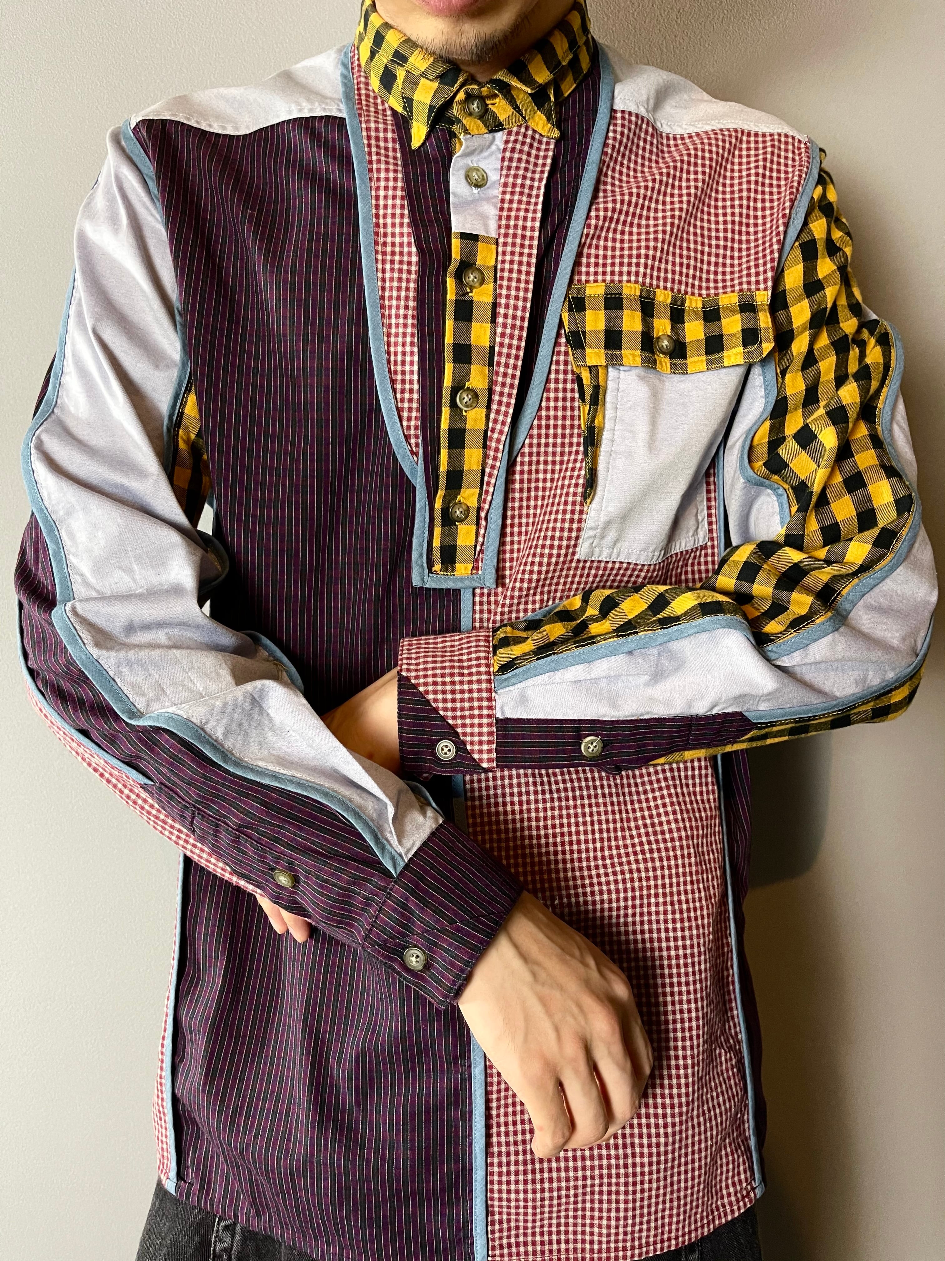 「HENRIK VIBSKOV」 cotton piping design color blocking shirt