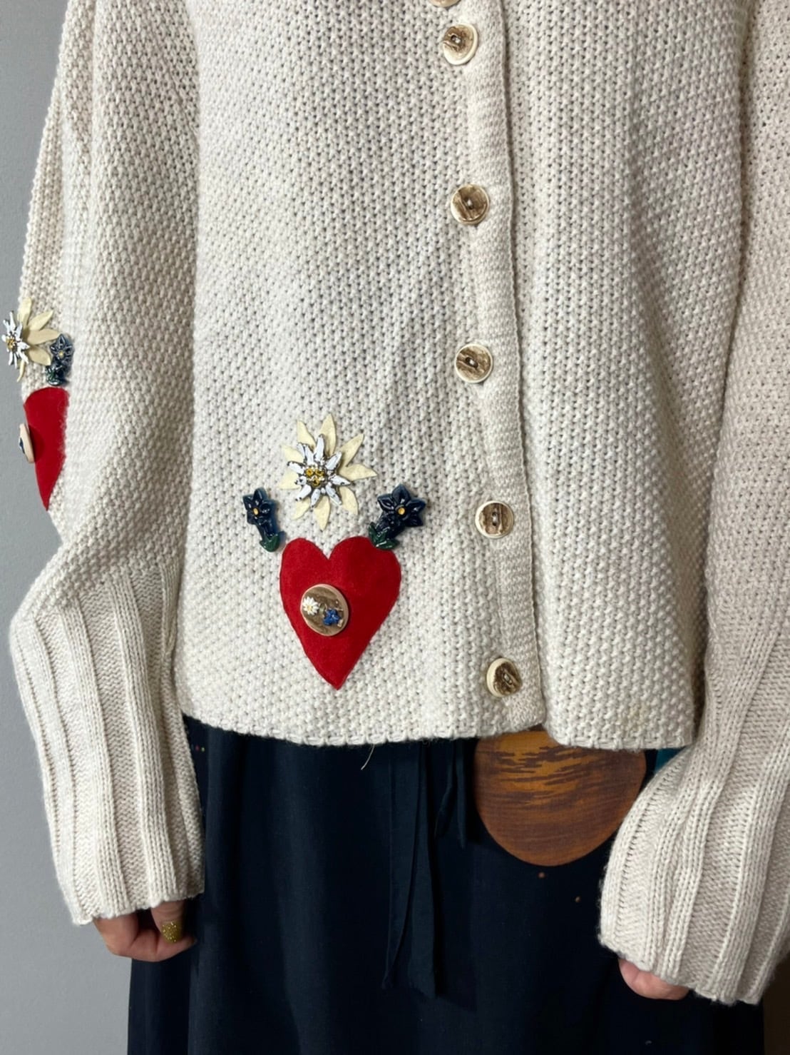 「AUSTRIA 70〜80's vintage」 ivory edelweis motif knit cardigan