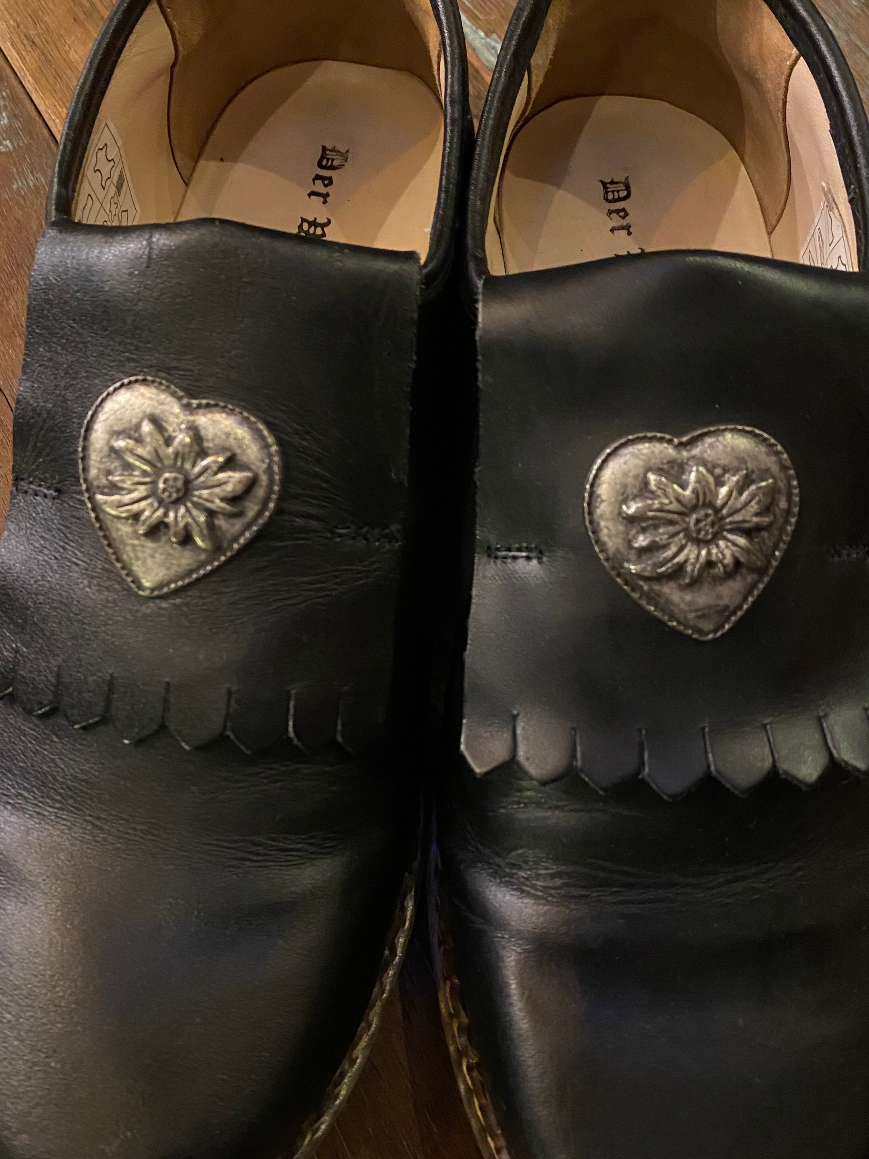 「AUSTRIA vintage」 black leather heart motif tyrolean shoes