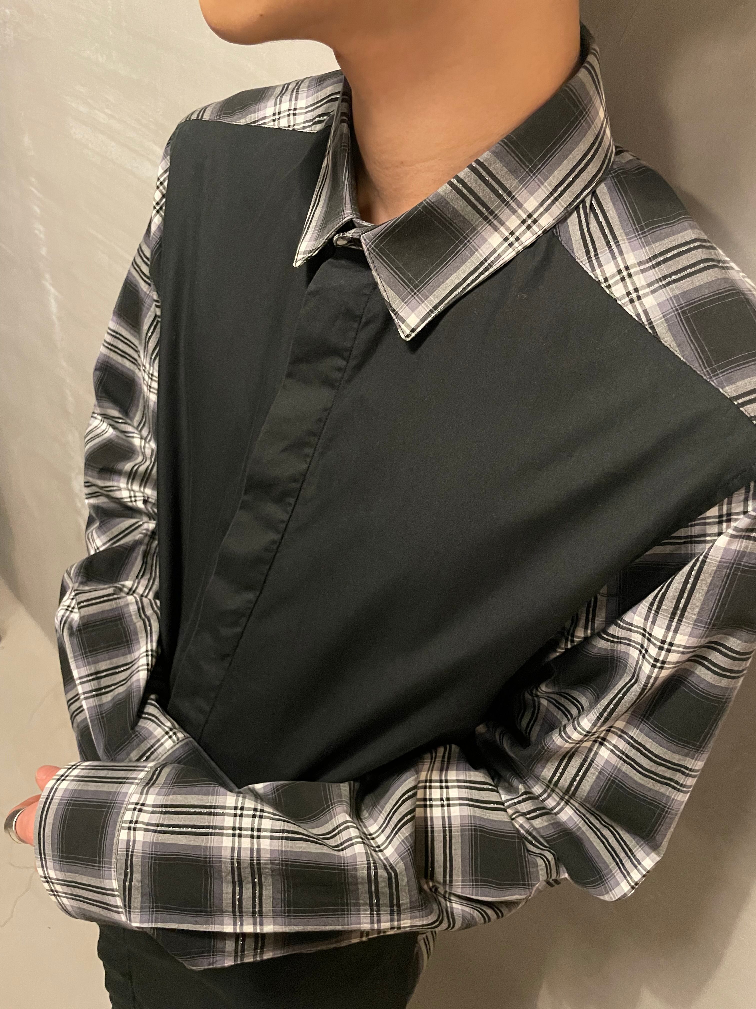 「KRIS VAN ASSCHE」bi -color design cotton shirt