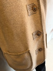 カーディガン風なシルエットですが、襟は控えめなスタンドカラーとなっており、縁はジュート風な素材でパイピングされており、ボタン部分の土台にも使われており、ボタンはウッドの上に立体的なエーデルワイスが光っています。