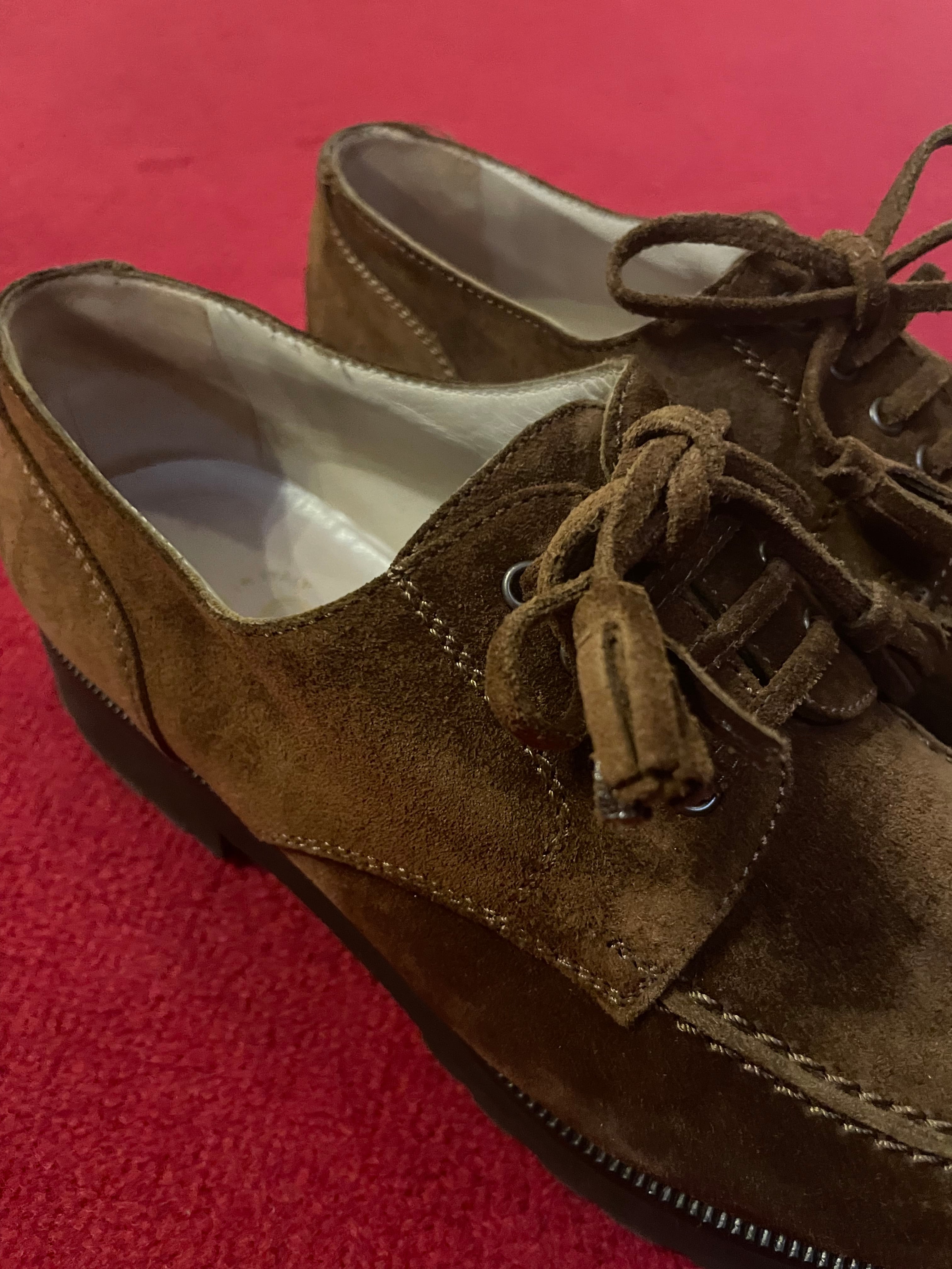 シャネルより、ブラウンスェードのレースアップシューズをご紹介致します。