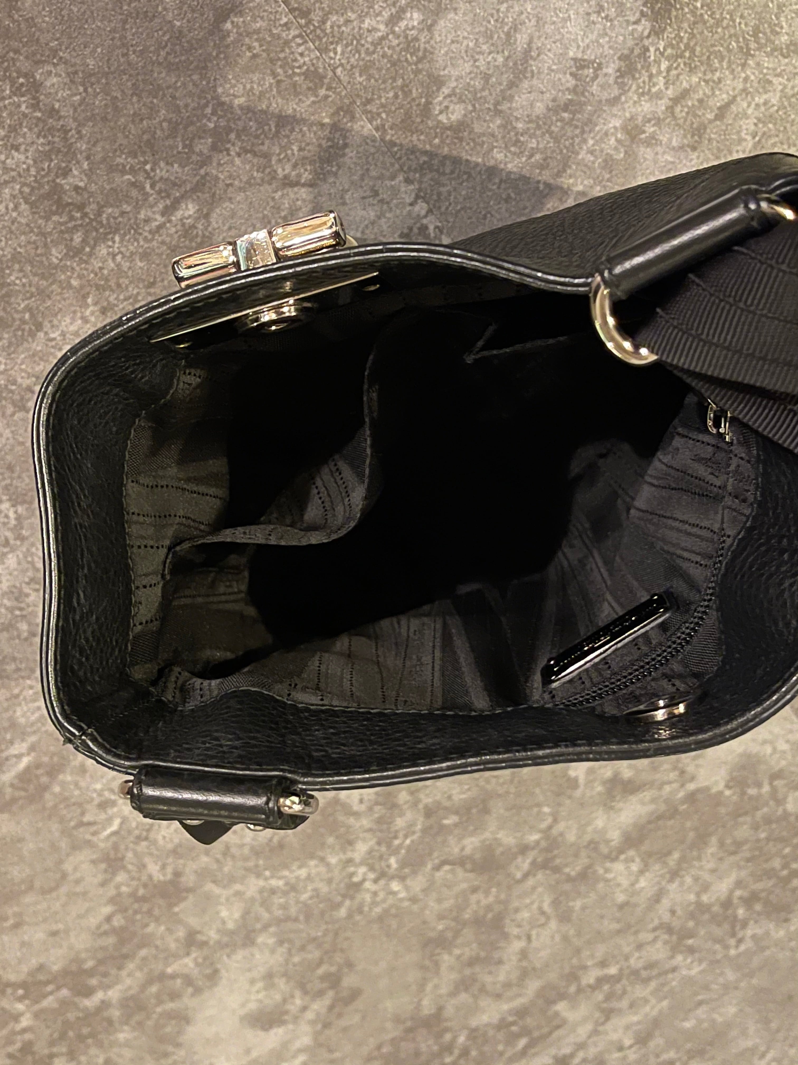 「Salvatore Ferragamo」black color texture processing design Gancini motif shoulder bag