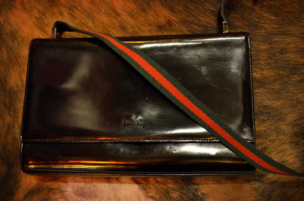 GUCCIらしいシェリーラインのパテントレザーバッグ。ミニバッグによくある作りのカードケース内蔵タイプの作りの為、機能的で40年代に流行したスクエア型のミニバッグはクラシカルでvintageには相性◎
