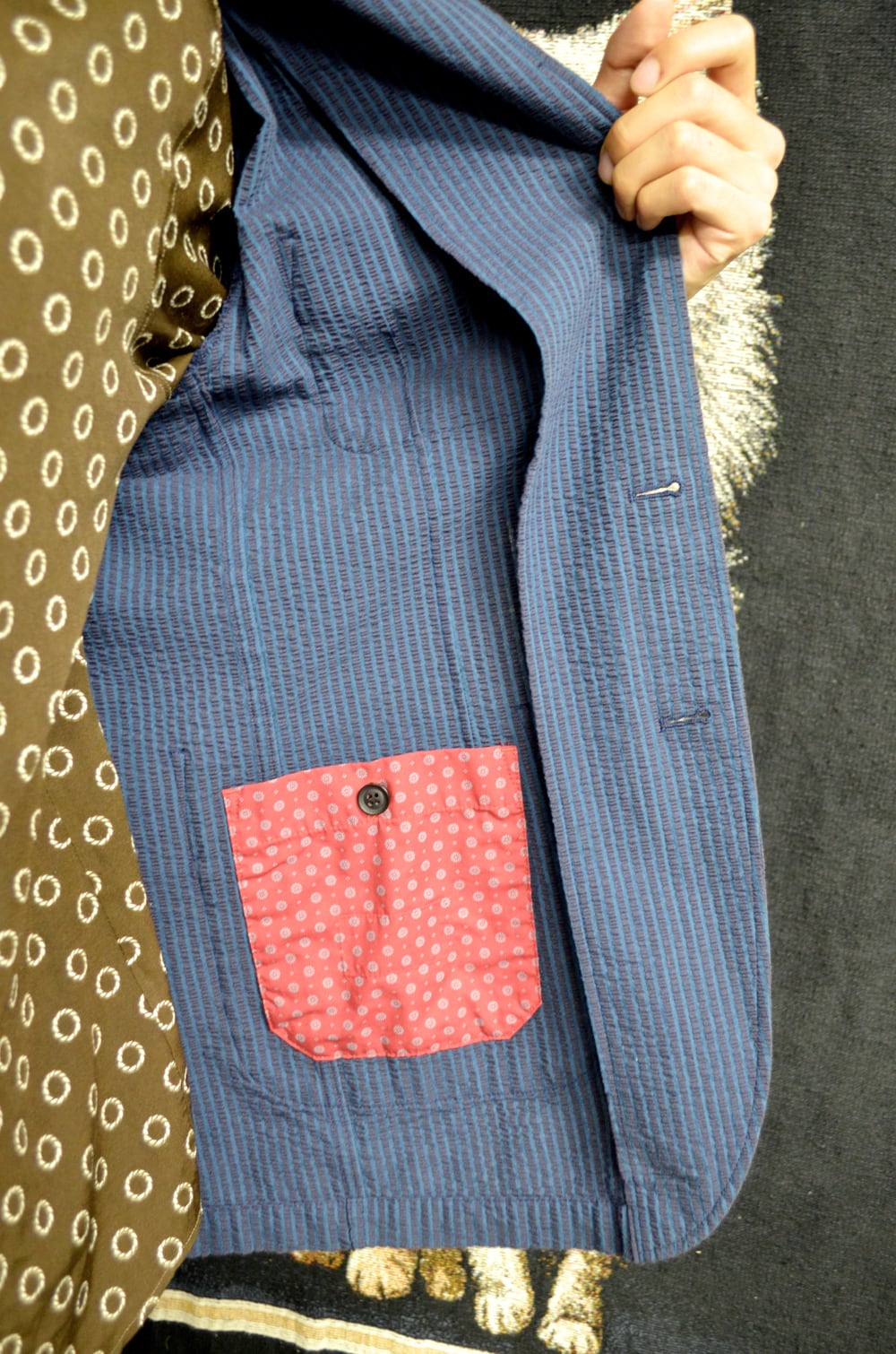 裏地やライナーまで愛らしいテキスタイルのユニークさが遊び心溢れるこちらは、シャツは勿論のことカジュアルダウンしてカットソーやデニムでMIXするのがおすすめ。ジャケットはどうしてもウール素材が多いのでこの時期見つけるのは苦労しますが、軽量で通気性にも優れストレスレスでお召し頂けます。